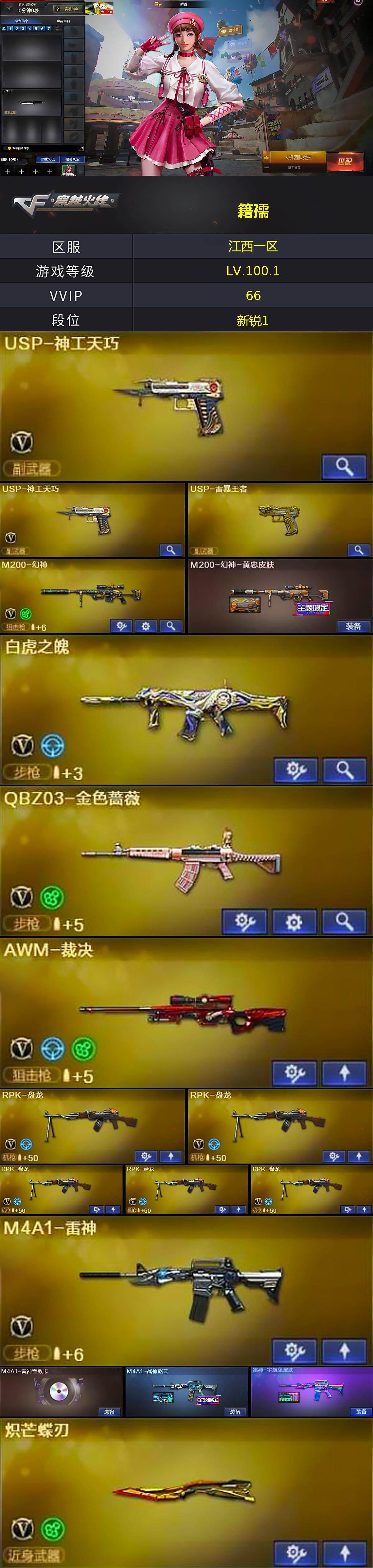江西一区-66V-6王者武器数-0炫金武器数【热门武器】:QBZ03-金色