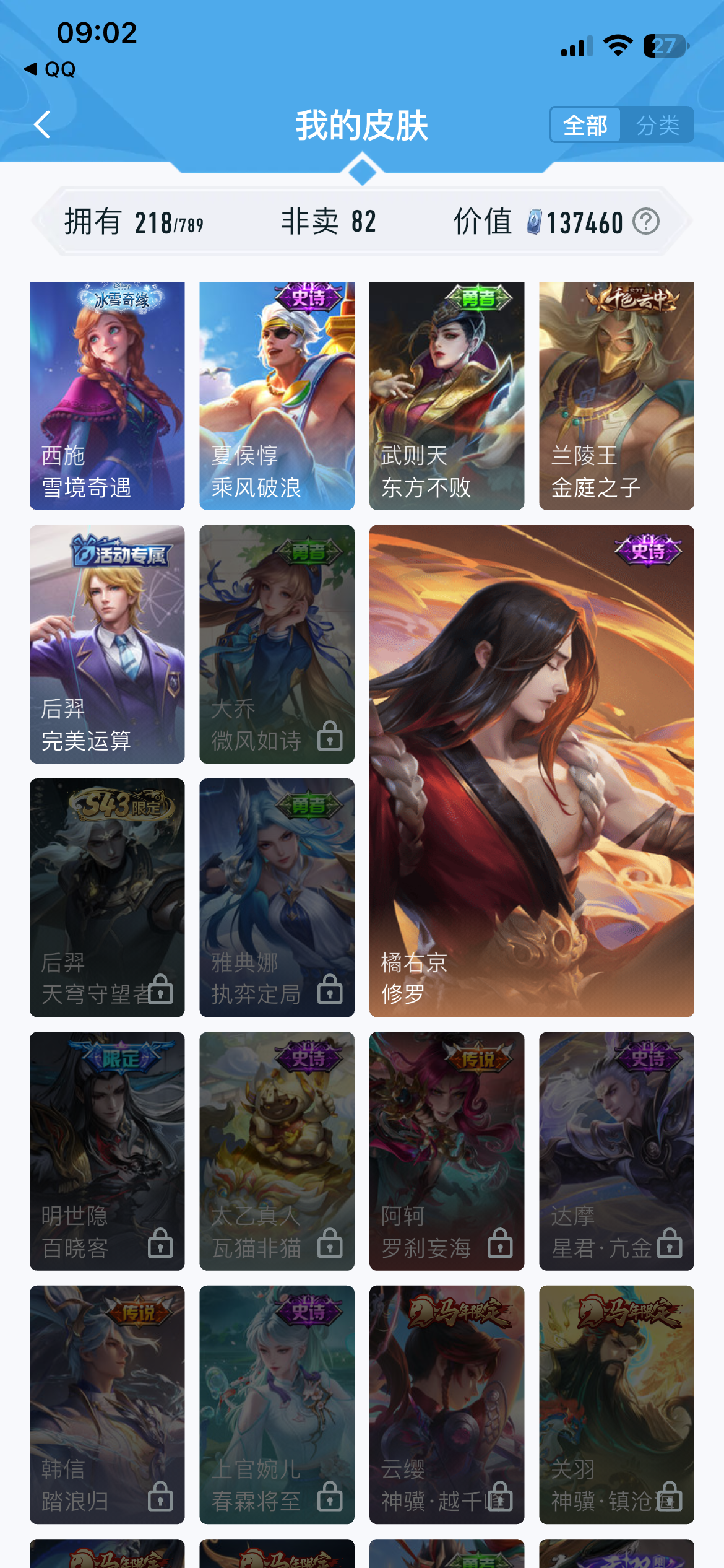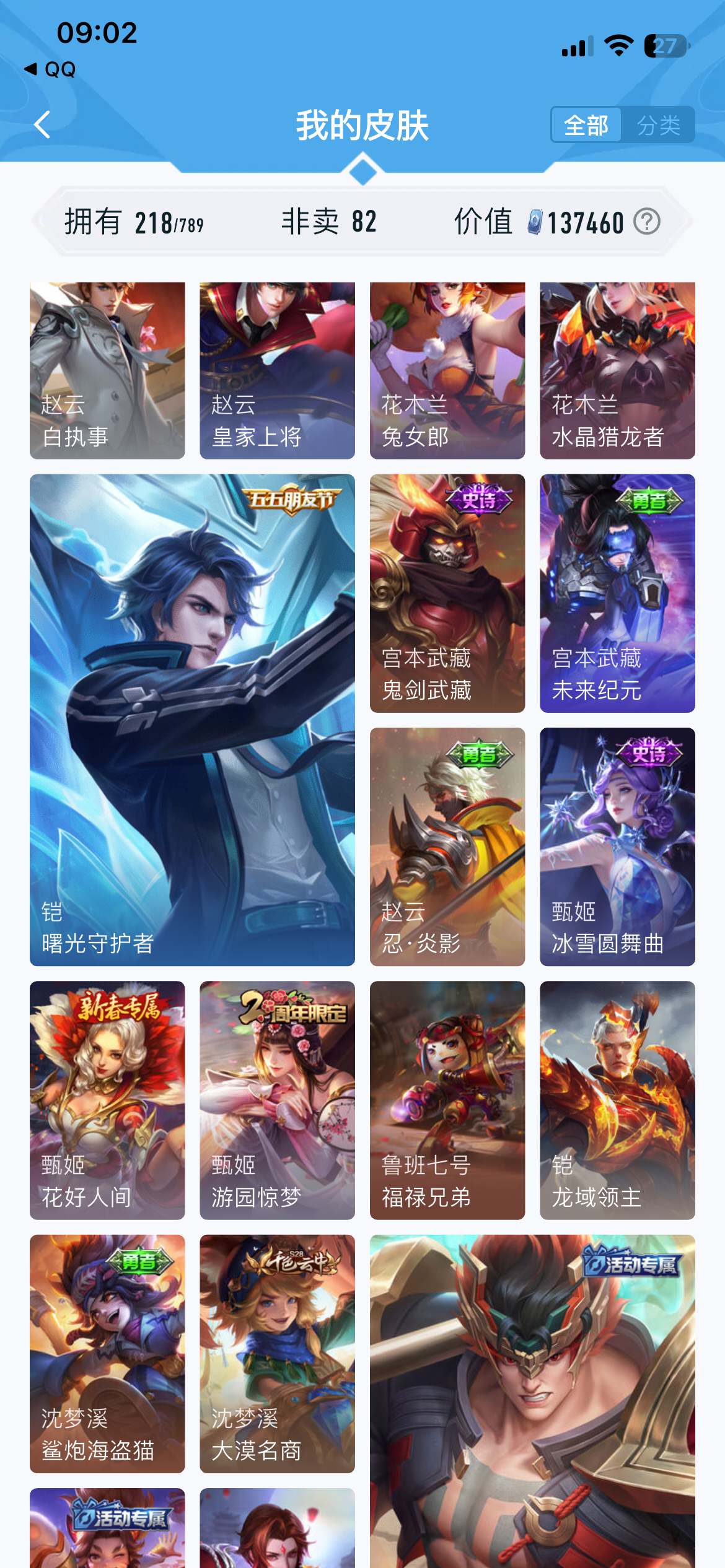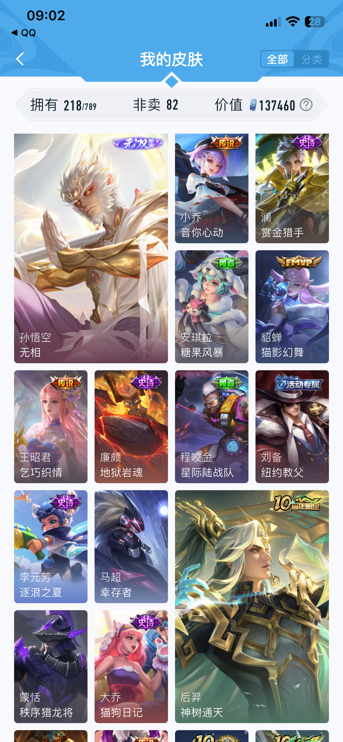 V7 皮肤218 英雄128 最强王者 无双皮肤1 星传说2 传说11