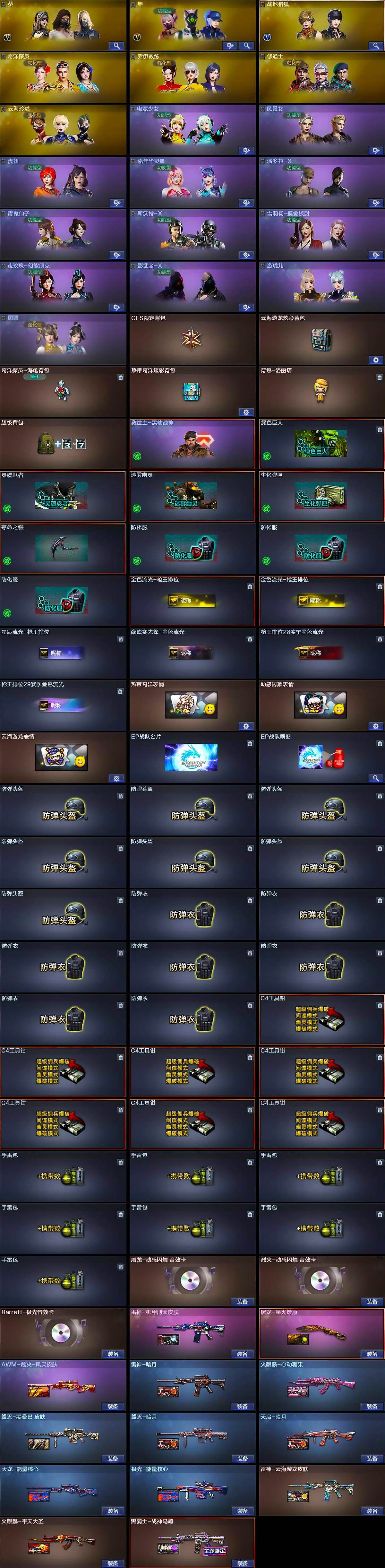 【皮肤】:AWM-裁决-凤灵皮肤,雷神-暗月,雷神-机甲刑天皮肤,雷神-云海游龙皮肤,火麒麟-平天大圣,火麒麟-心动糖果,毁灭-暗月,毁灭-黑曼巴 皮肤,黑骑士-战神马超,天启-暗月,天龙-能量核心,极光-能量核心,屠龙-星火燎原