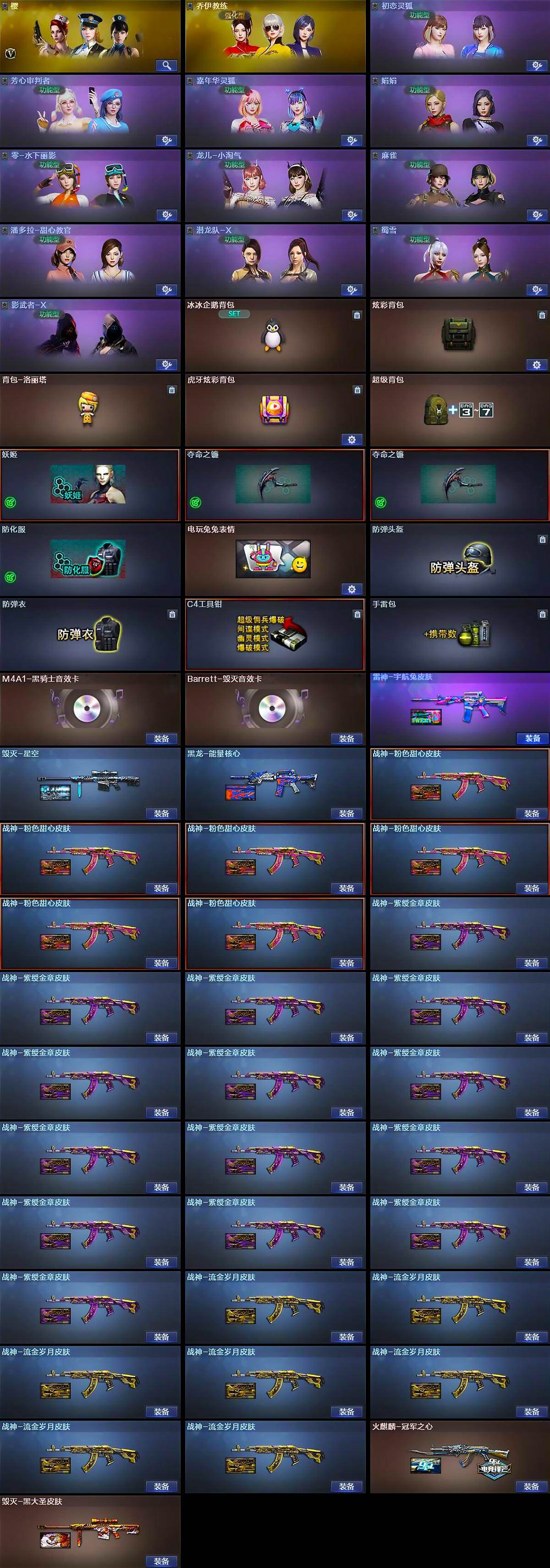 【皮肤】:雷神-宇航兔皮肤,火麒麟-冠军之心,毁灭-星空,毁灭-黑大圣皮肤,毁灭-英雄计划 皮肤,黑龙-能量核心,战神-粉色甜心皮肤*6,战神-紫绶金章皮肤*14,战神-流金岁月皮肤*7
