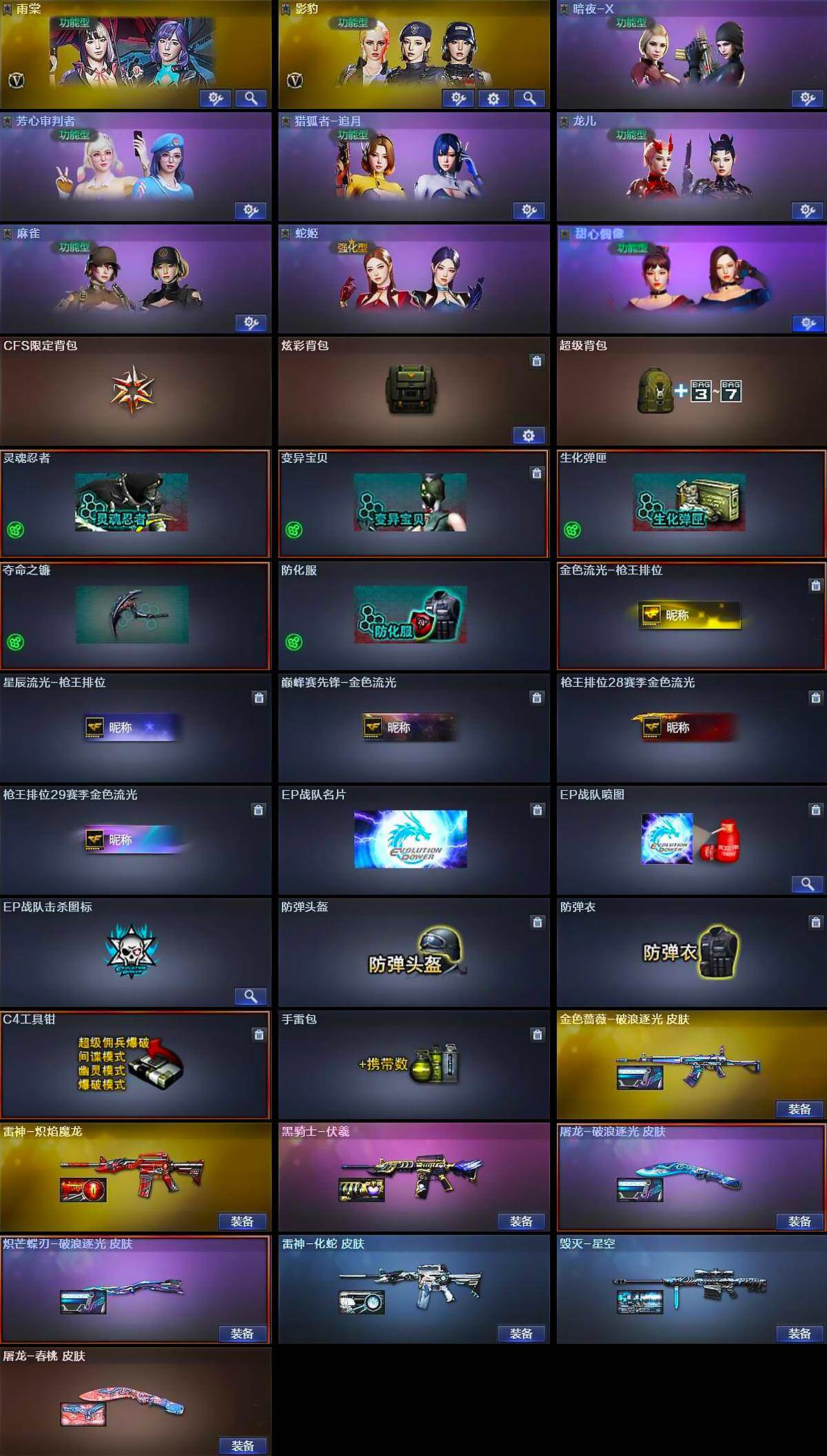 【角色】:雨棠,影豹,暗夜-X,芳心审判者,猎狐者-追月,0号玩家,流浪蔷薇,龙儿,麻雀,蛇姬,甜心偶像