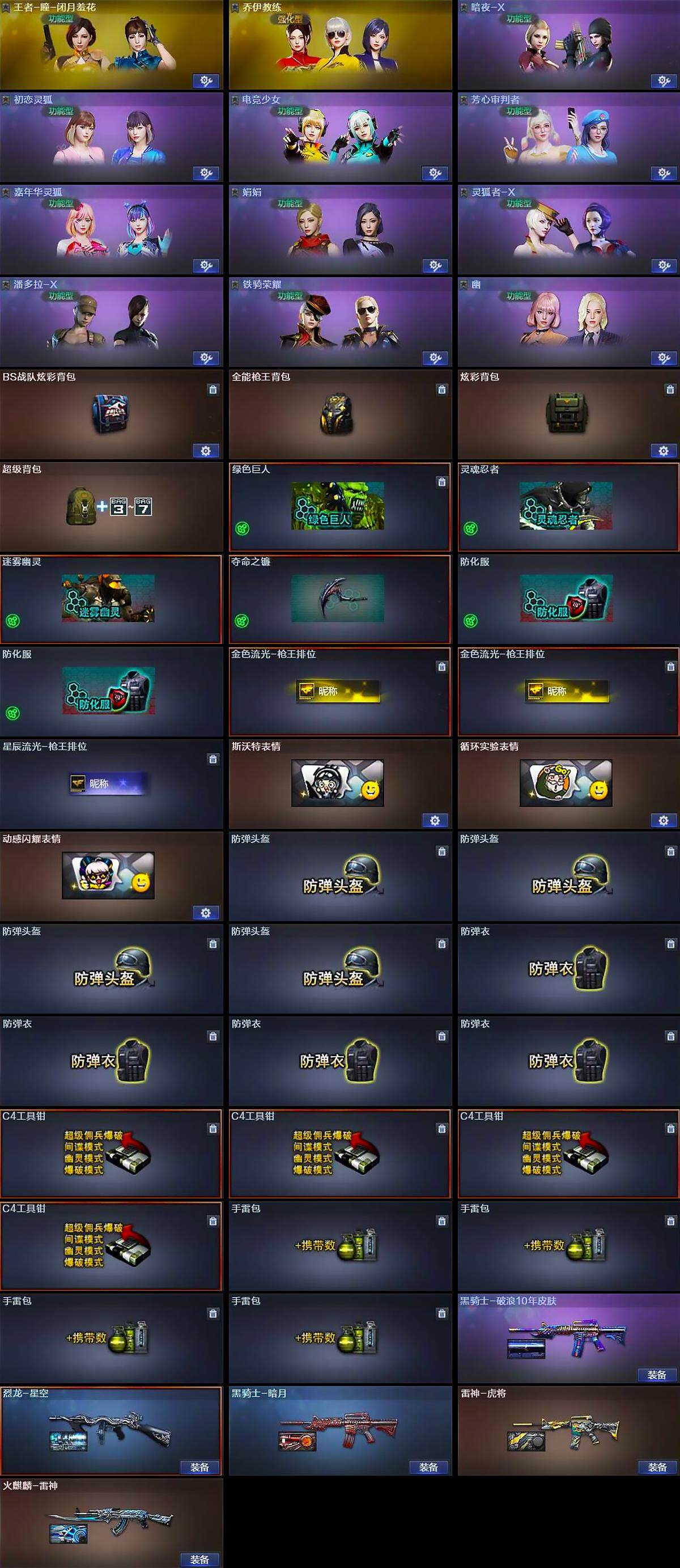 【皮肤】:烈龙-星空,雷神-虎将,火麒麟-雷神,黑骑士-暗月,黑骑士-破浪10年皮肤
