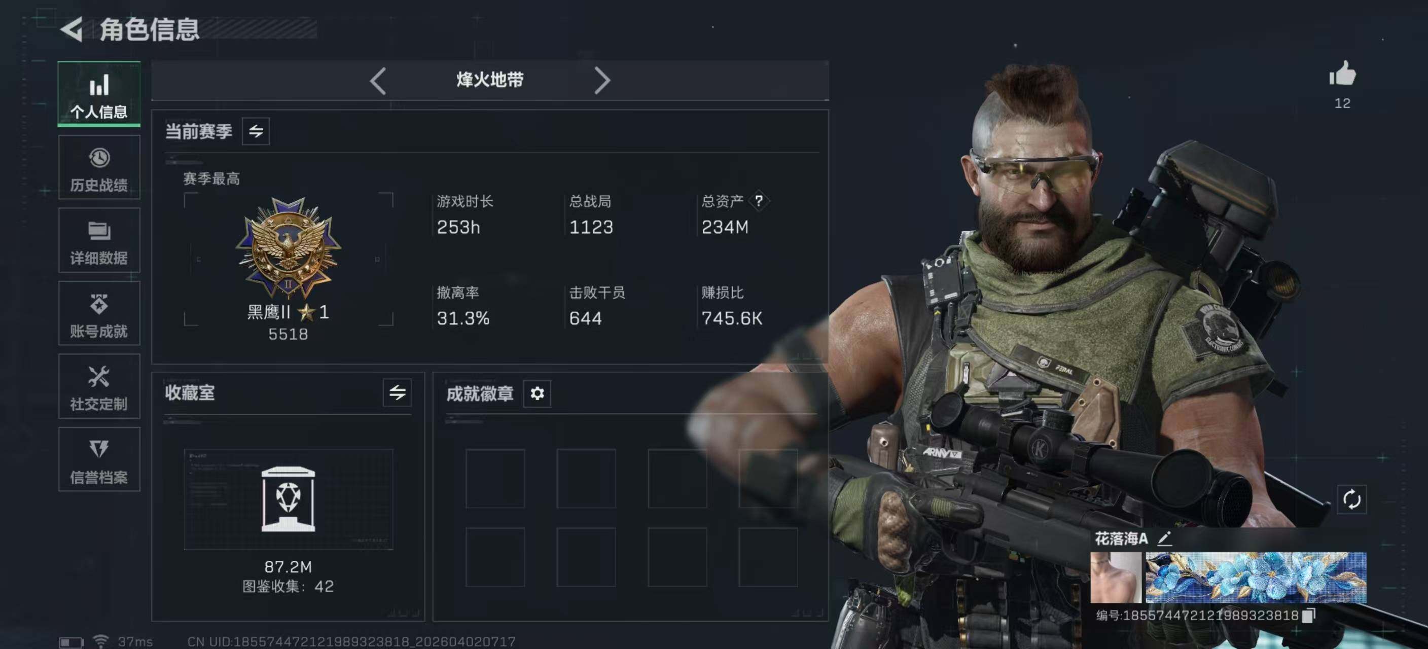 233m总资产-709k哈夫币-60烽火等级-黑鹰-9战场