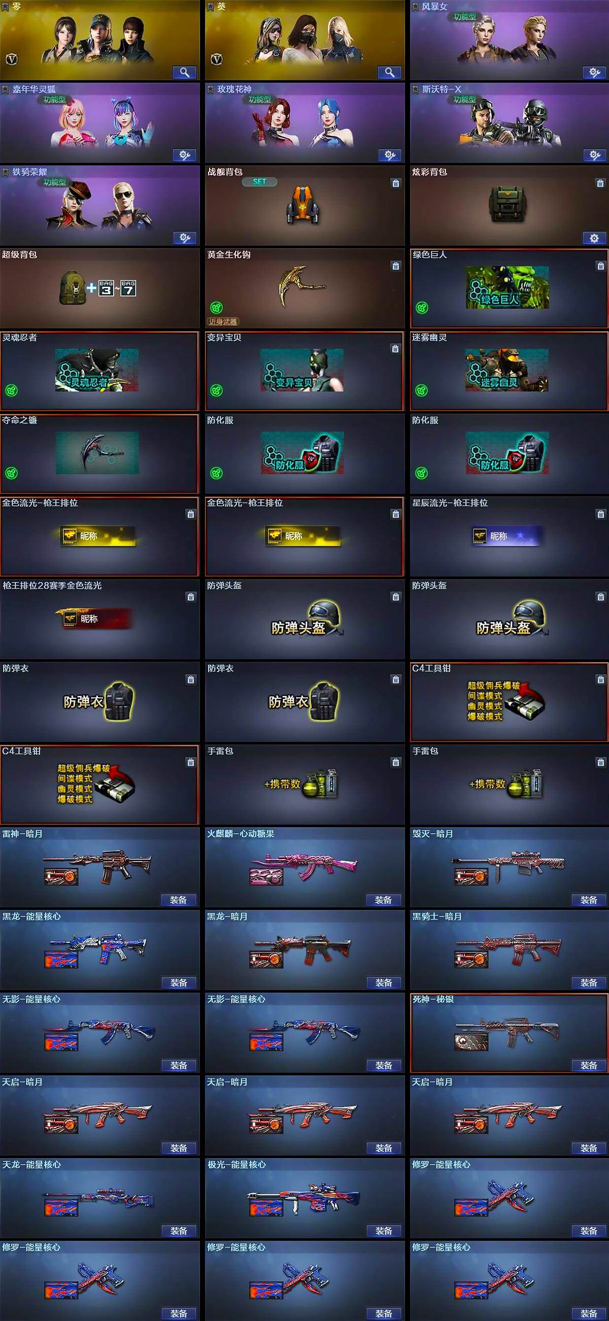 【皮肤】:雷神-暗月,火麒麟-心动糖果,毁灭-暗月,黑龙-能量核心,黑龙-暗月,黑骑士-暗月,无影-能量核心*2,死神-秘银,天启-暗月*3,天龙-能量核心,极光-能量核心,修罗-能量核心*4