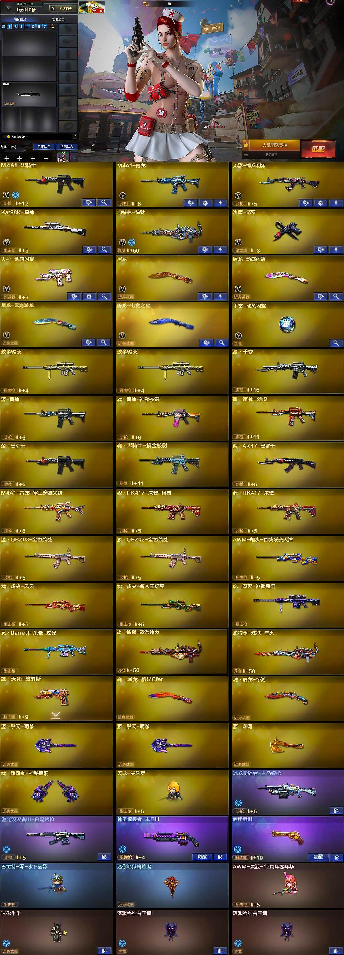 【热门武器】:M4A1-青龙,Kar98K-星神,M4A1-黑骑士,加特林-炼狱,沙鹰-修罗
