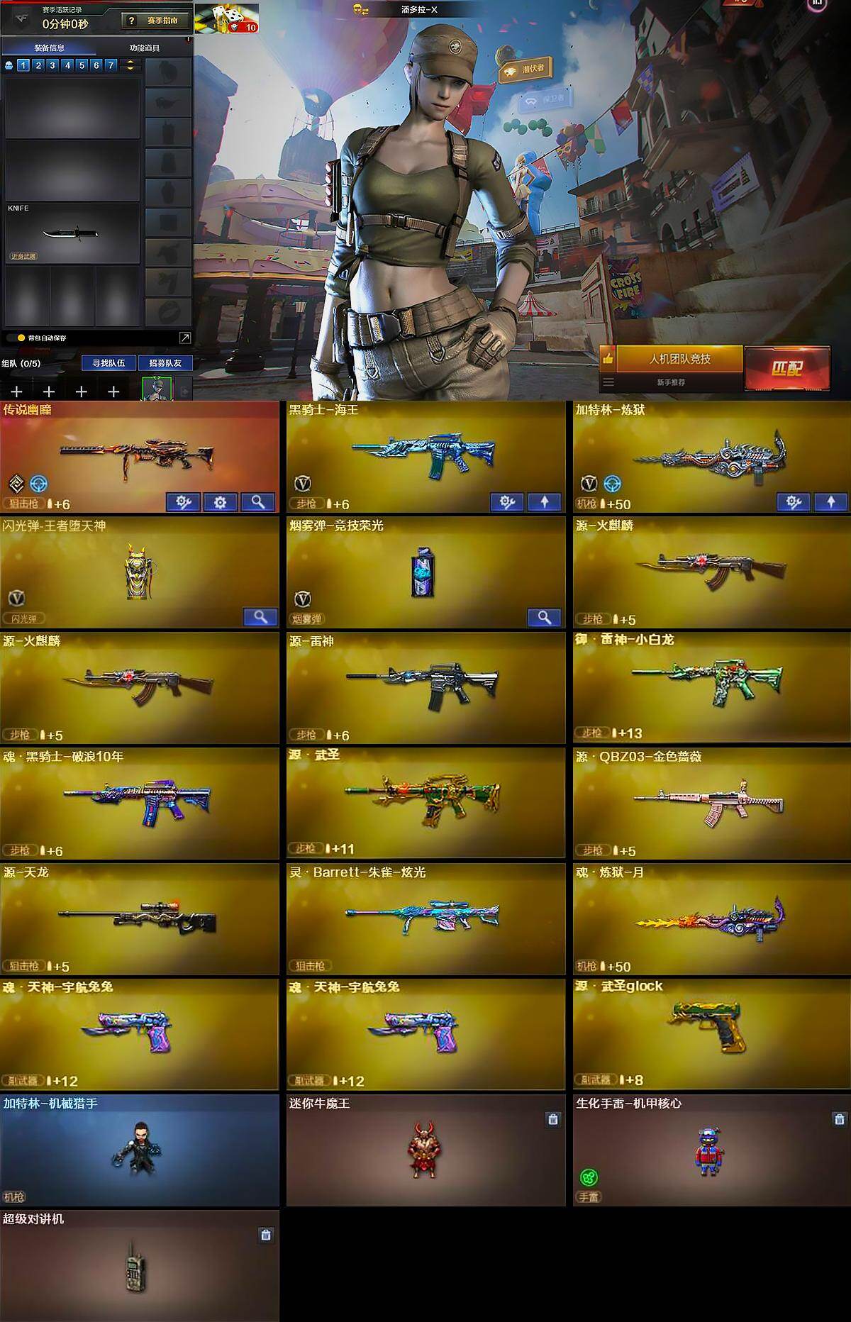 【英雄级武器】:黑骑士-海王,加特林-炼狱,闪光弹-王者堕天神-觉醒版,烟雾弹-竞技荣光