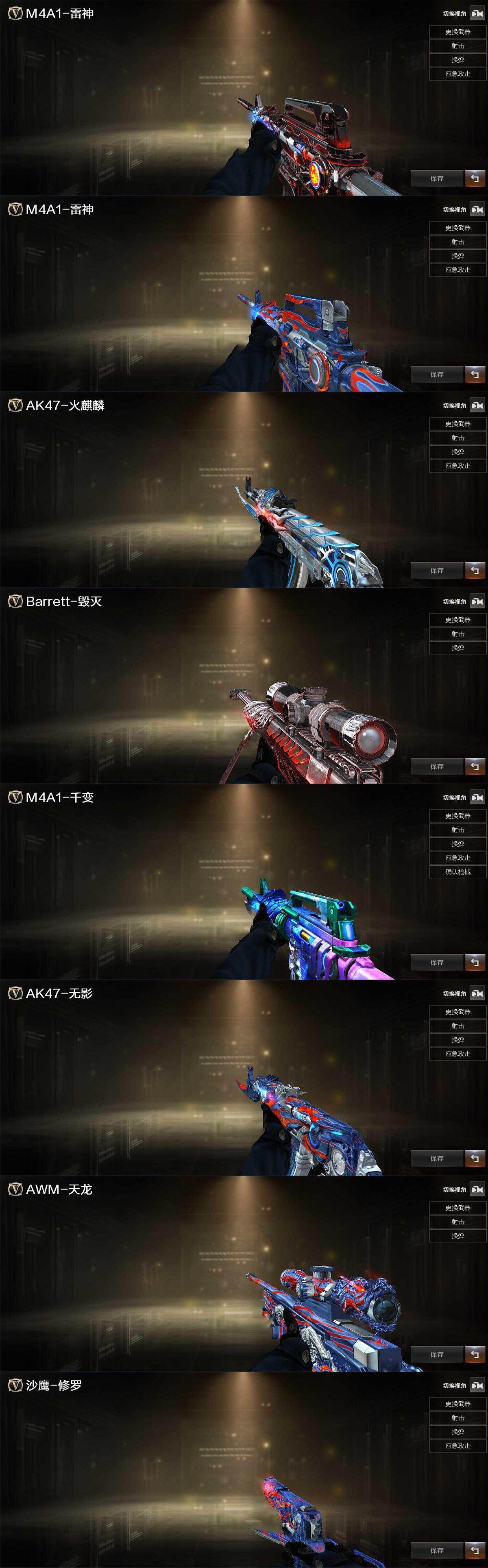 【热门武器】:死亡之眼*4,加特林-炼狱*2,沙鹰-修罗*3