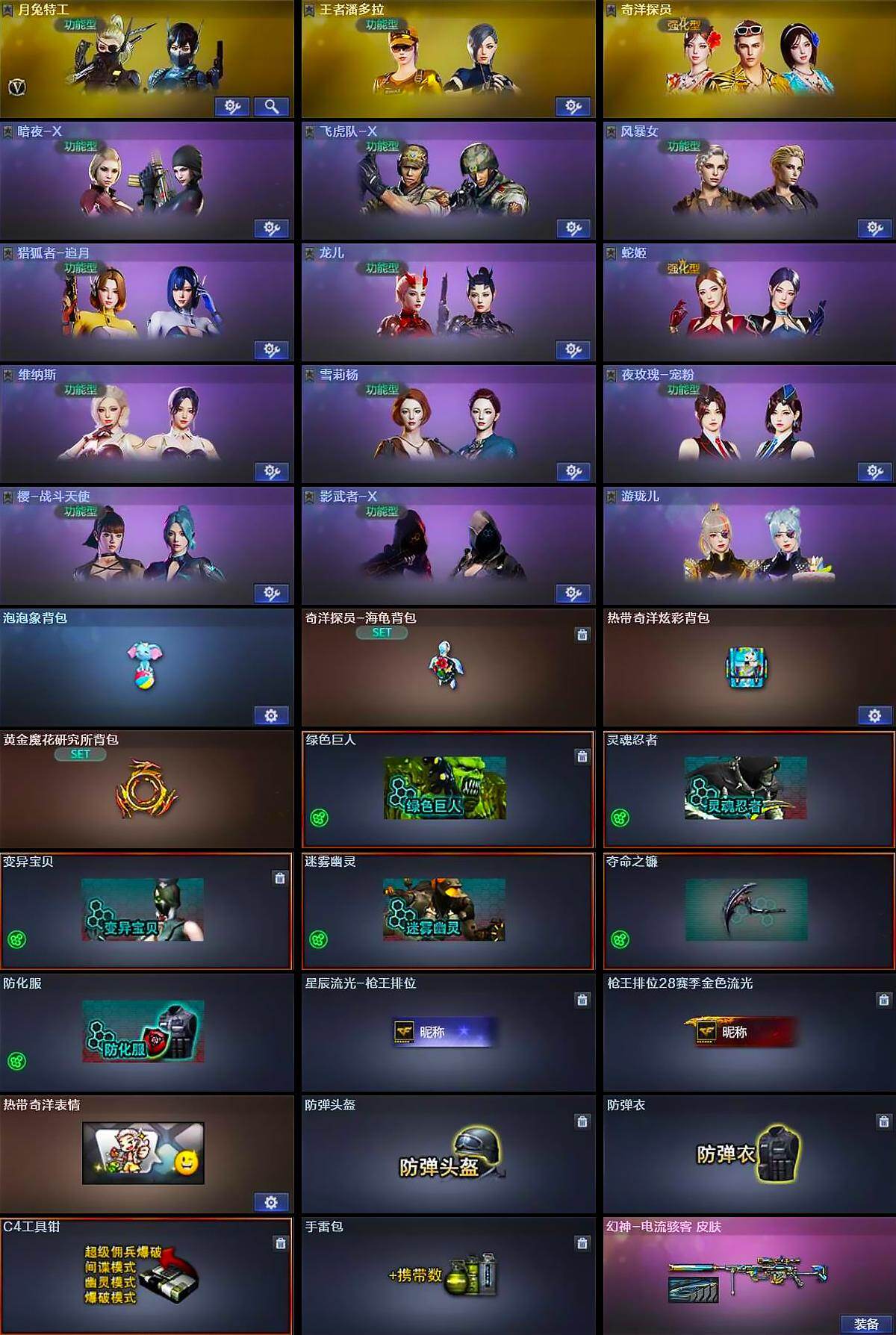 【角色】:月兔特工,王者潘多拉,奇洋探员,暗夜-X,飞虎队-X,风暴女,猎狐者-追月,龙儿,蛇姬,维纳斯,雪莉杨,夜玫瑰-宠粉,樱-战斗天使,影武者-X,游珑儿