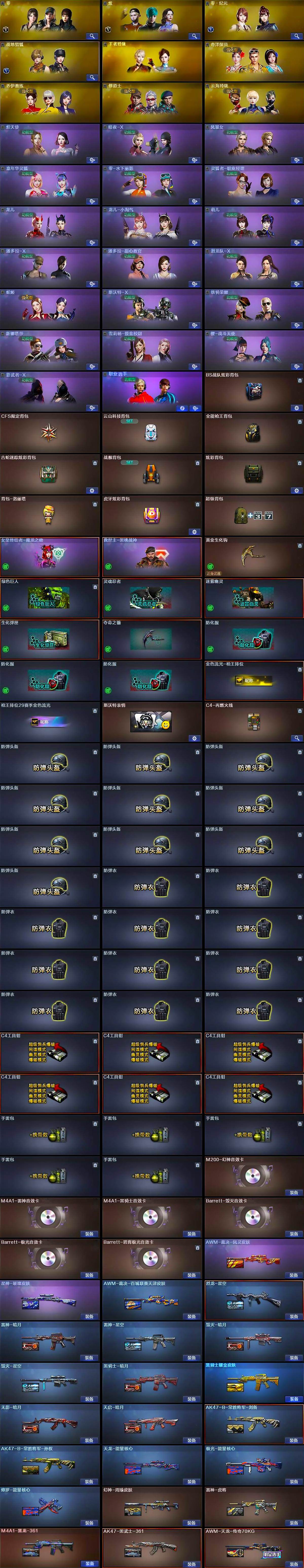 【音效卡】:M200-幻神音效卡,M4A1-雷神音效卡,M4A1-黑骑士音效卡,Barrett-毁灭音效卡,Barrett-极光音效卡,Barrett-碧霄极光音效卡