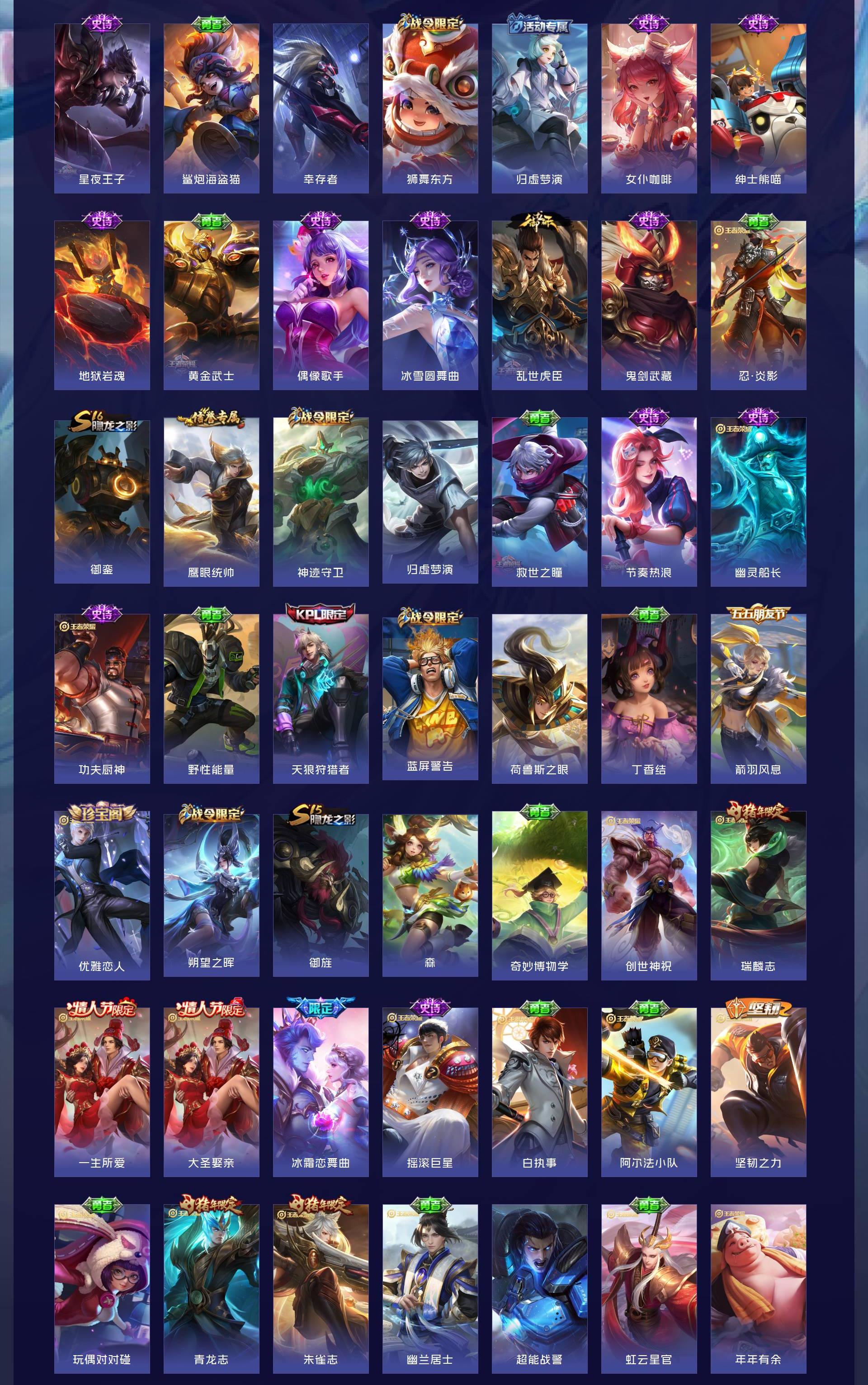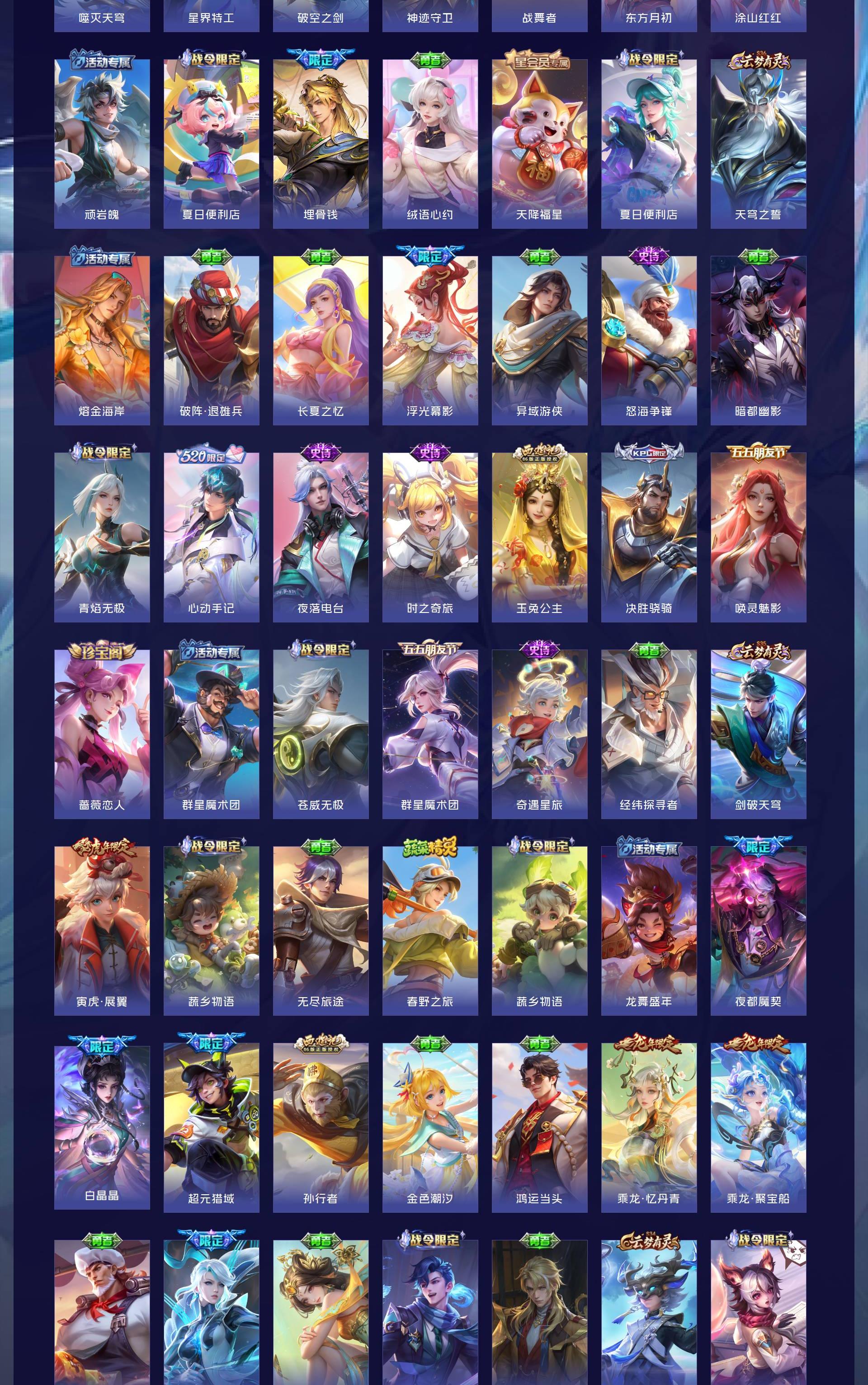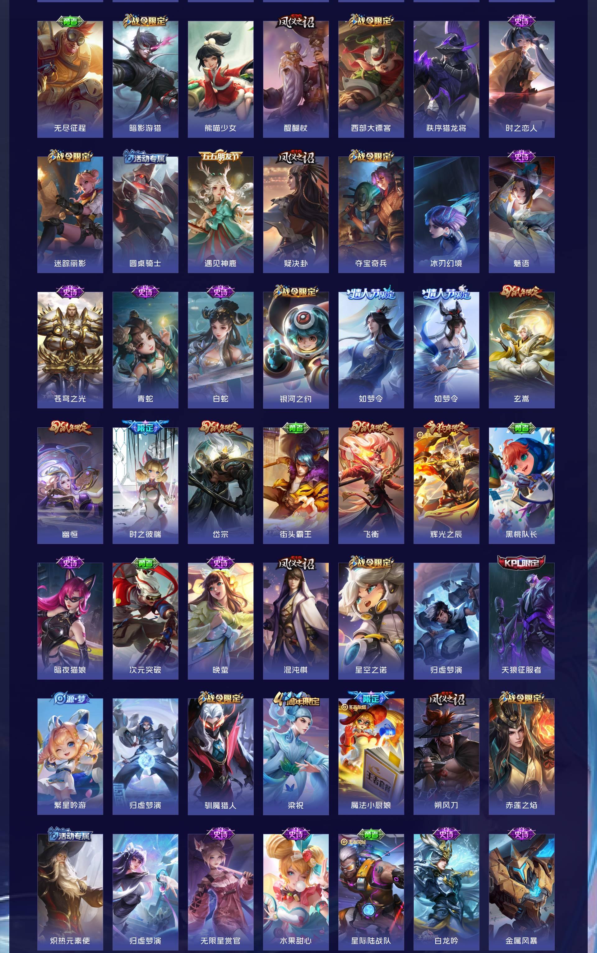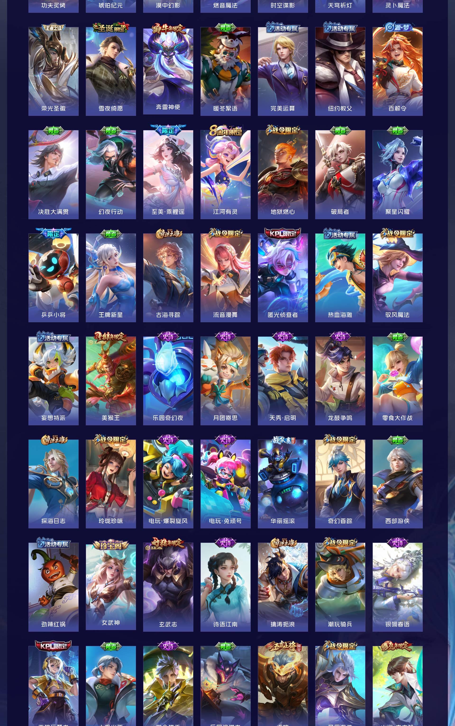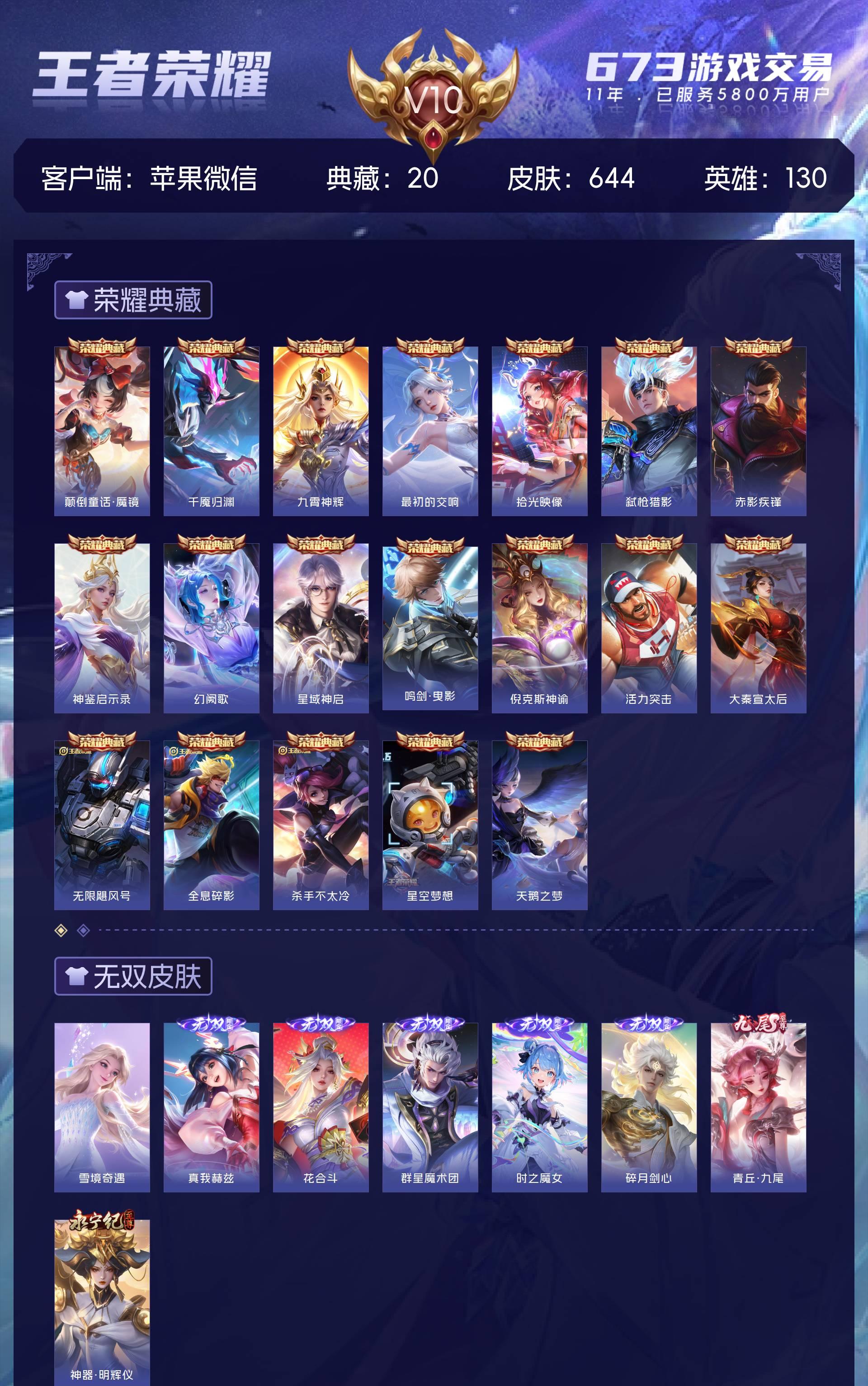 V10 皮肤644 英雄130 至尊星耀 荣耀典藏20 无双皮肤8 珍品传说6 传说83