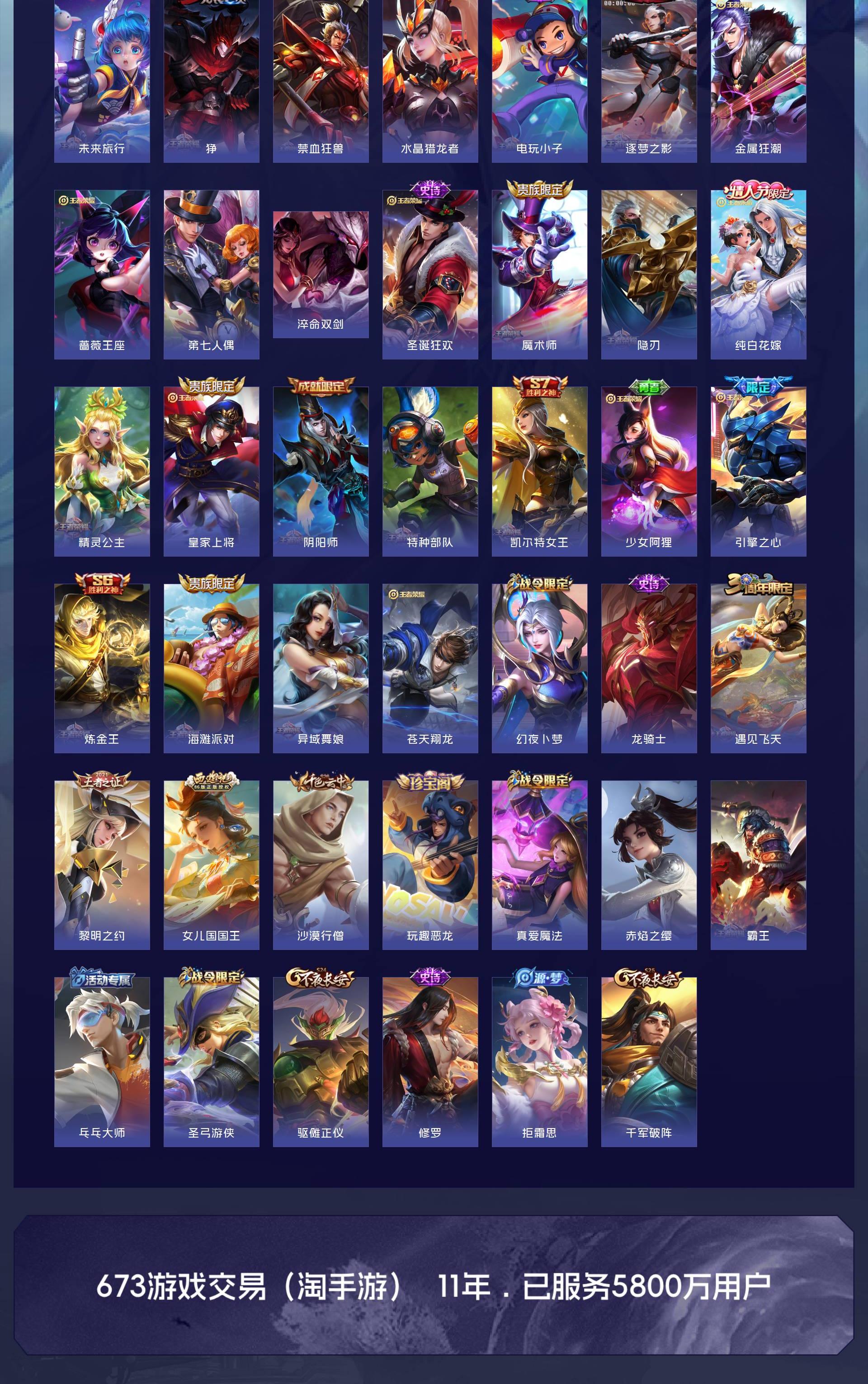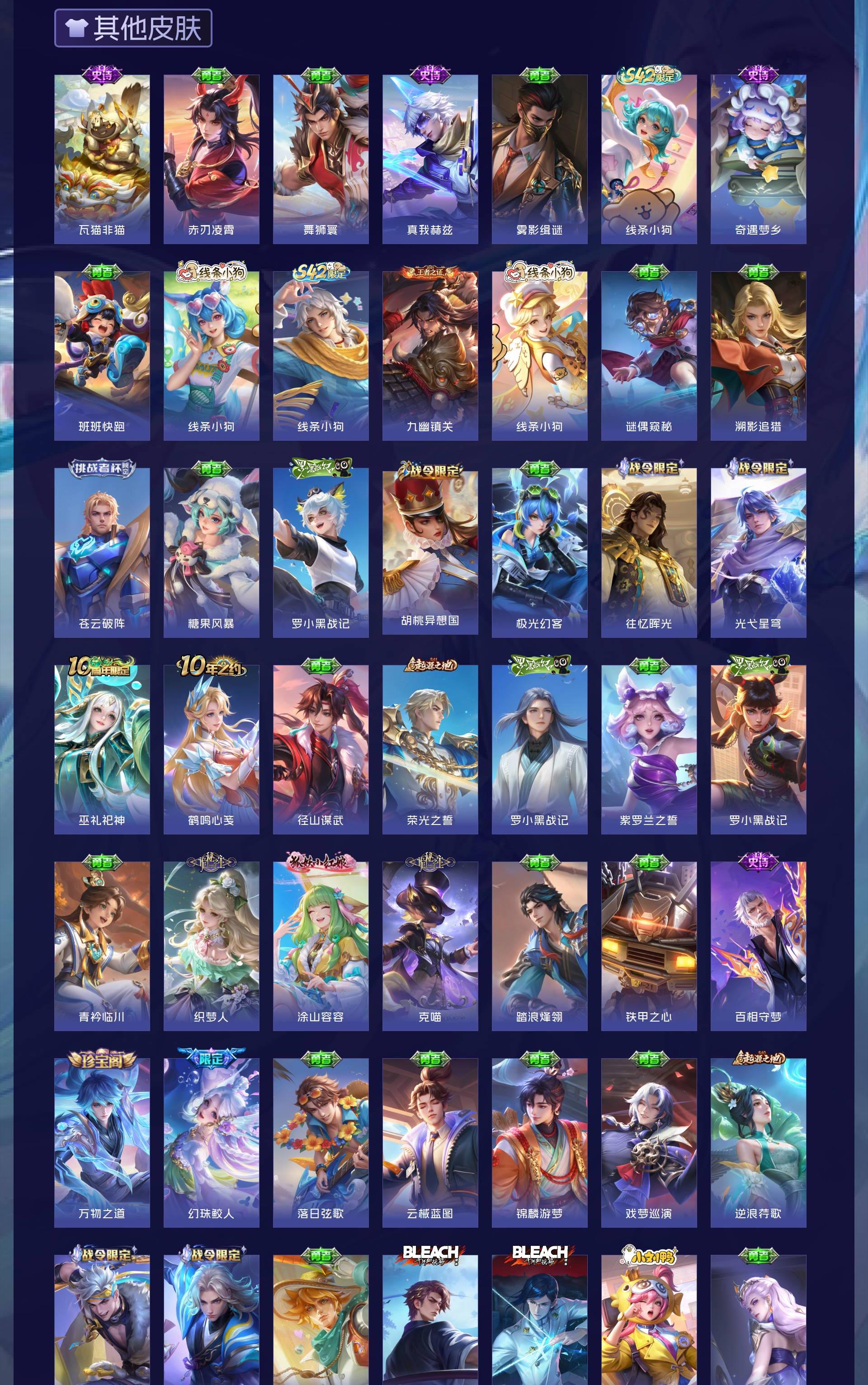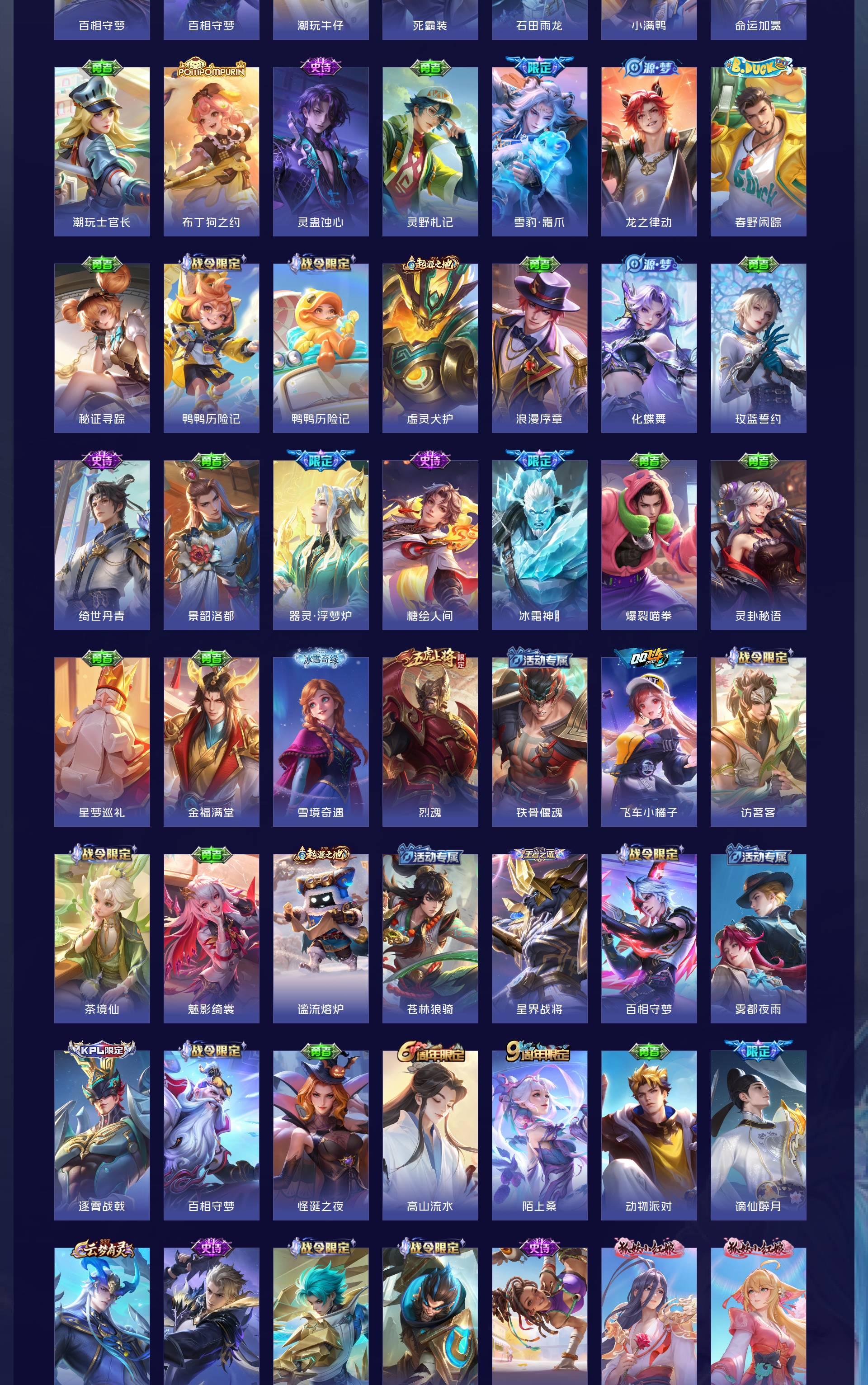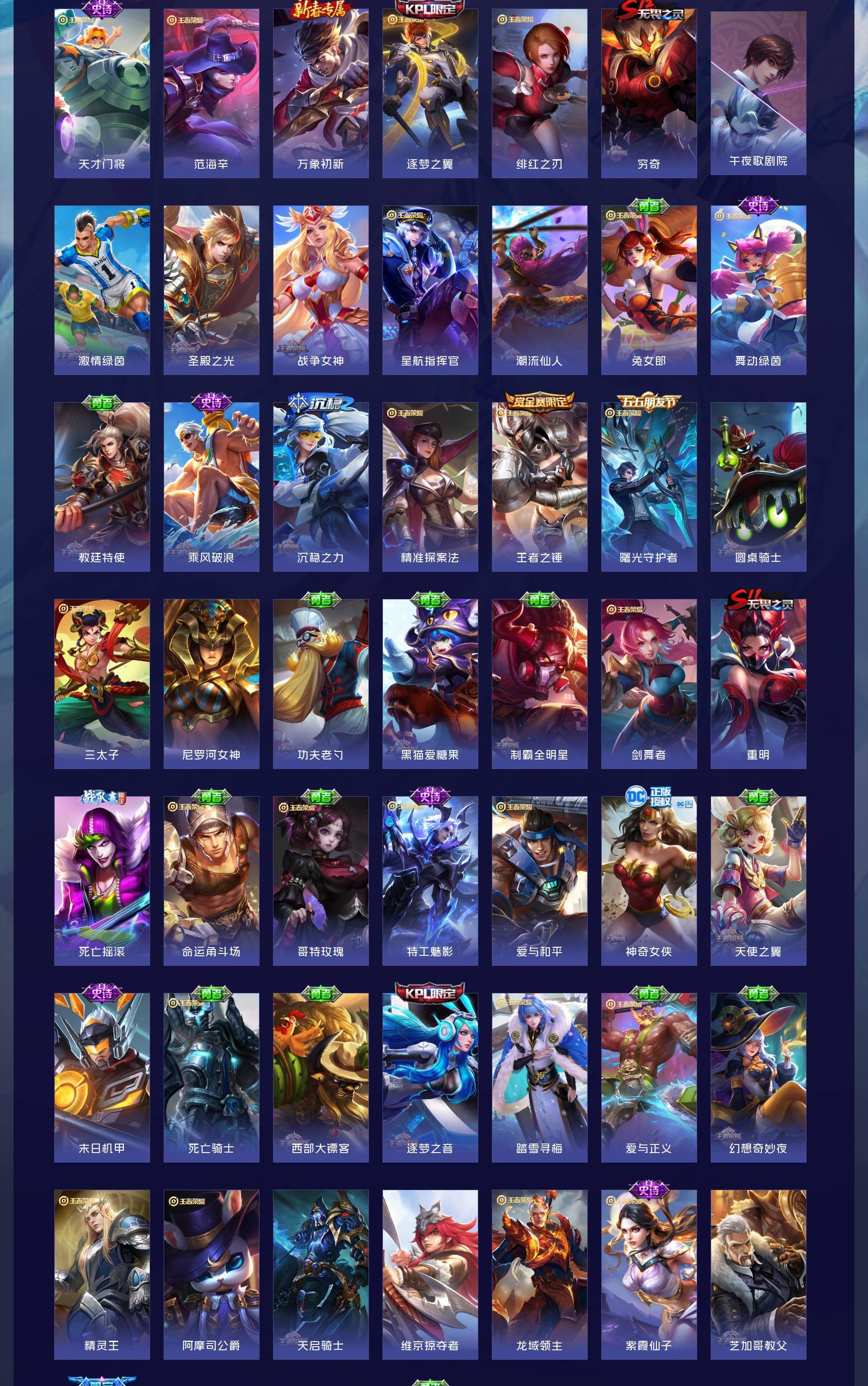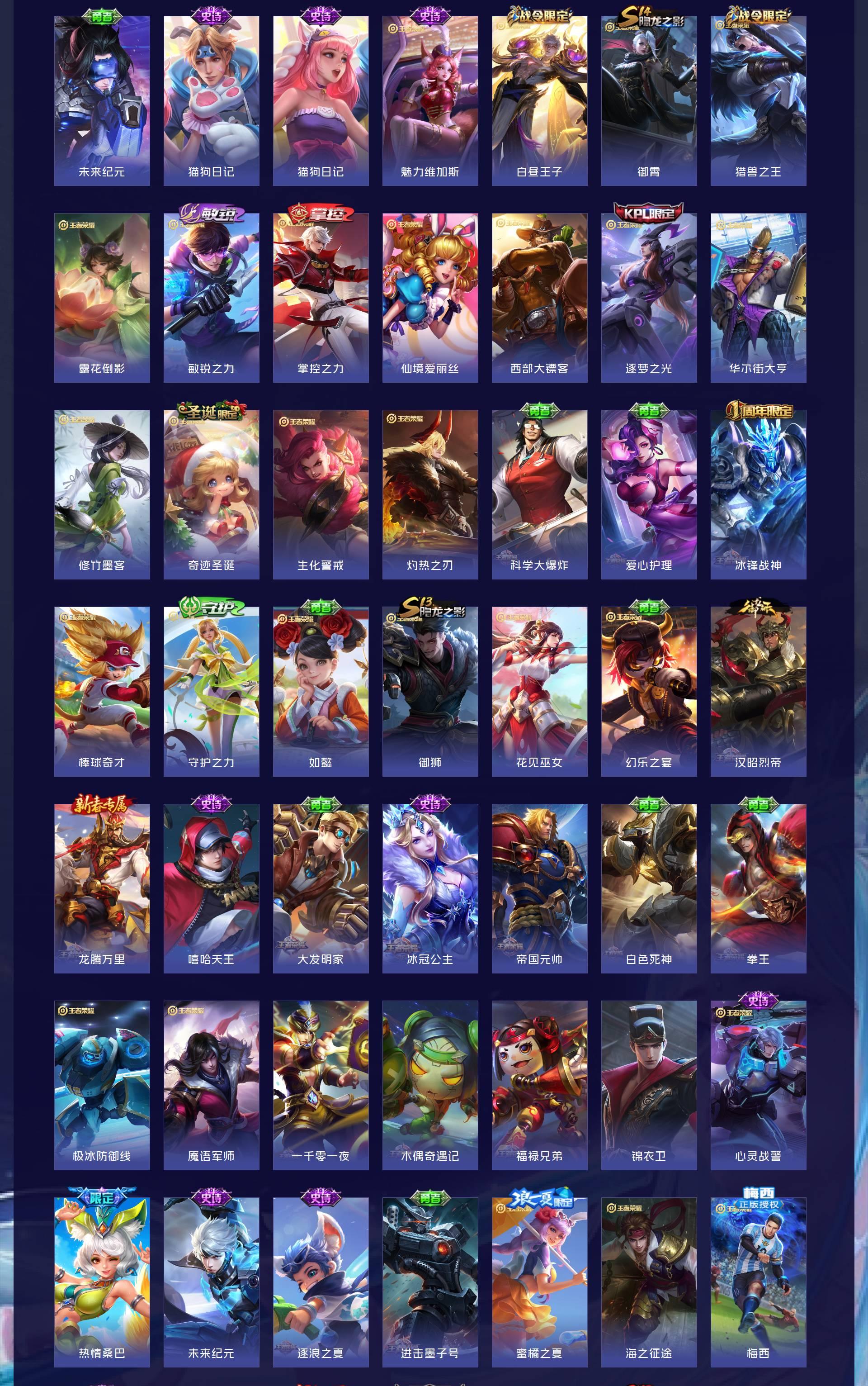 V10 皮肤644 英雄130 至尊星耀 荣耀典藏20 无双皮肤8 珍品传说6 传说83