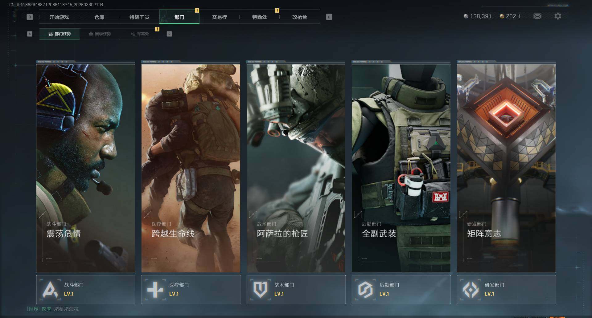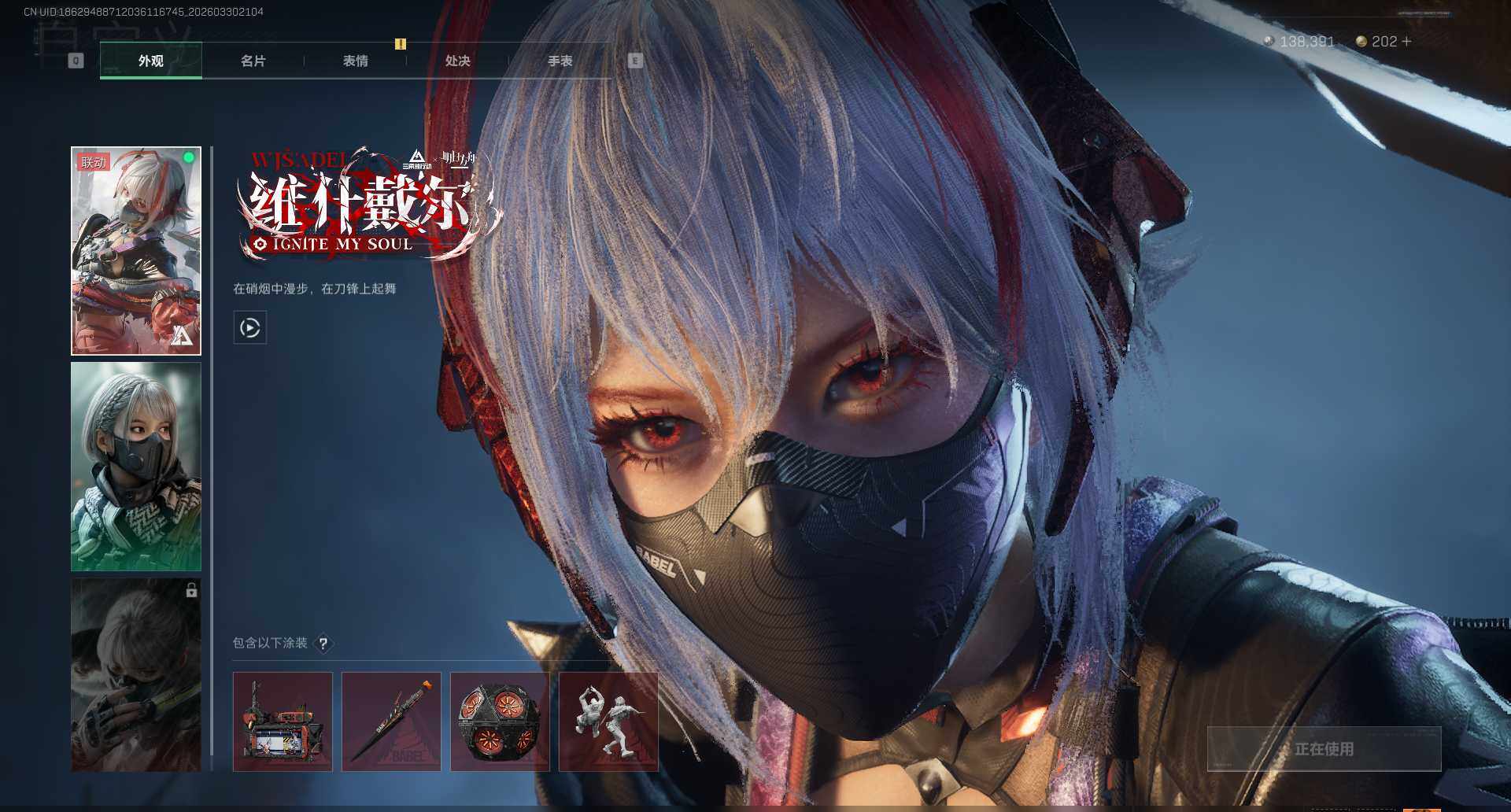 总资产(M):1M/哈夫币(K):138K/传说枪皮数:9/全面战场等级:1_段位:无段位/烽火地带等级:45_段位:黄金/骇爪-维什戴尔/近战-黑鹰/