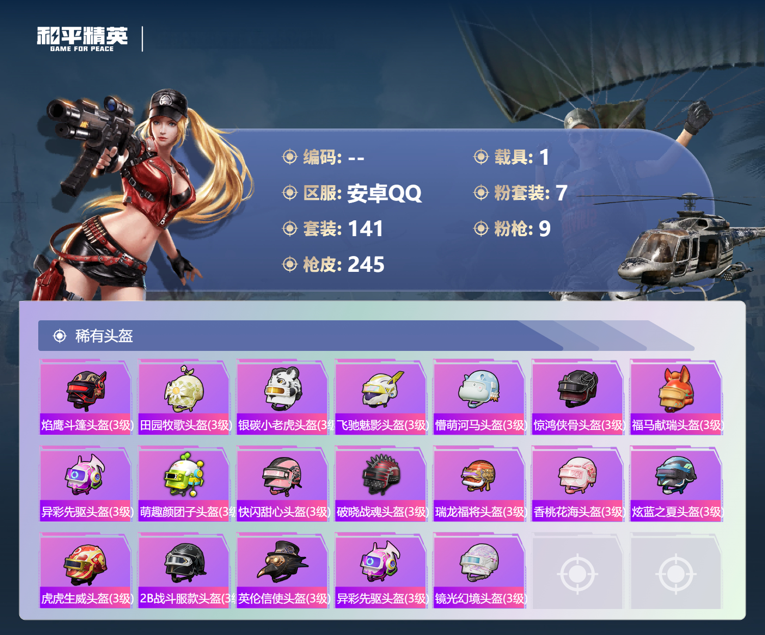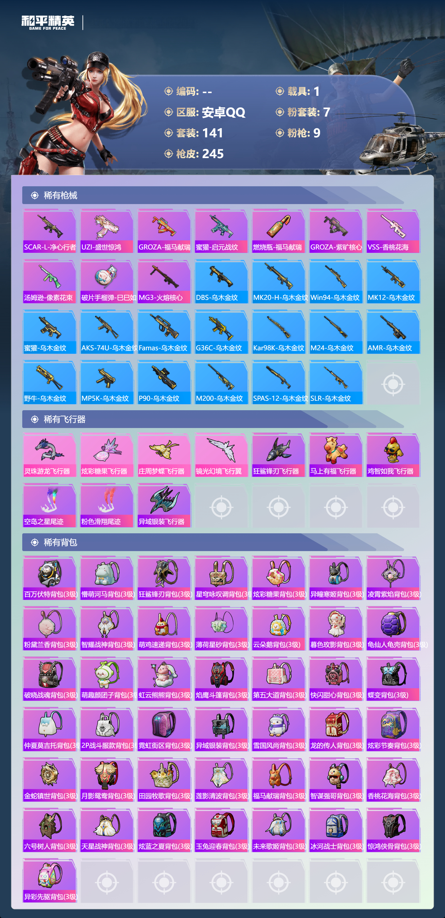 安卓手Q-13王牌印记-7粉装-9特效枪-1载具-72522热力值-141套装-