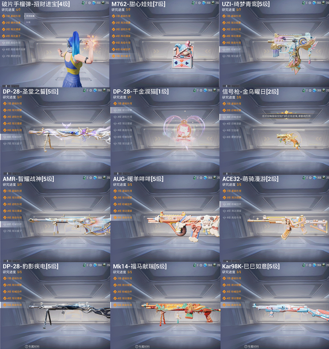 粉装13:雪国幻梦,,蜜语绒猫,,极限特训,,梦幻火箭,,黑伞漫漫,,山涧鹿灵,,精灵娃娃,,黄伞悠悠,,酣梦娃娃,,甜心娃娃,,蓝莓炮弹,,垂柳戏鸭,,碧影闪光,