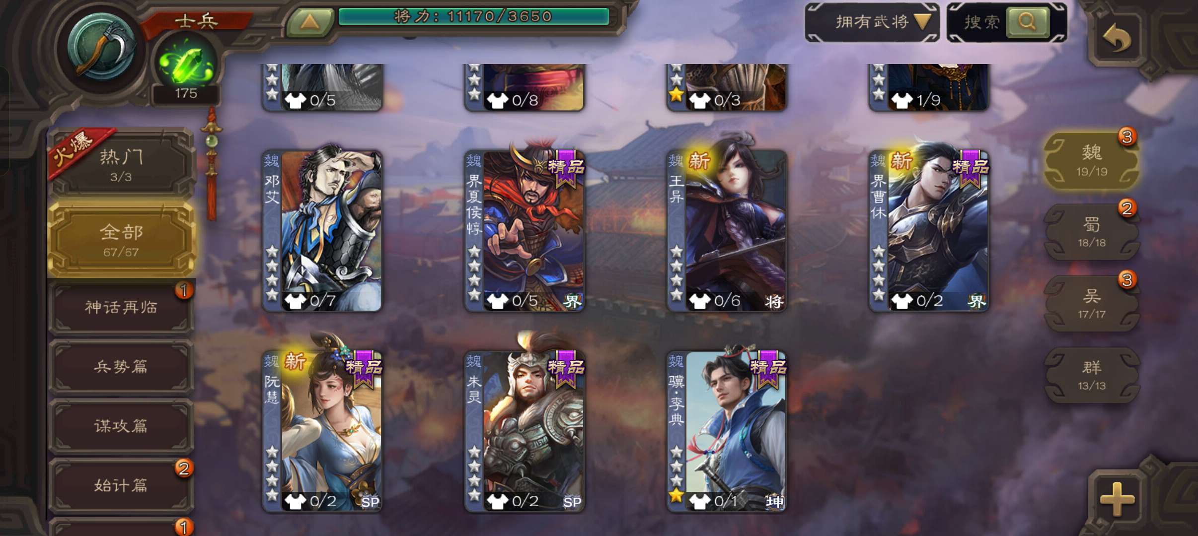 67将士兵,真动态界左慈,骥李典谋卢植张布,96招募令110雁翎甲