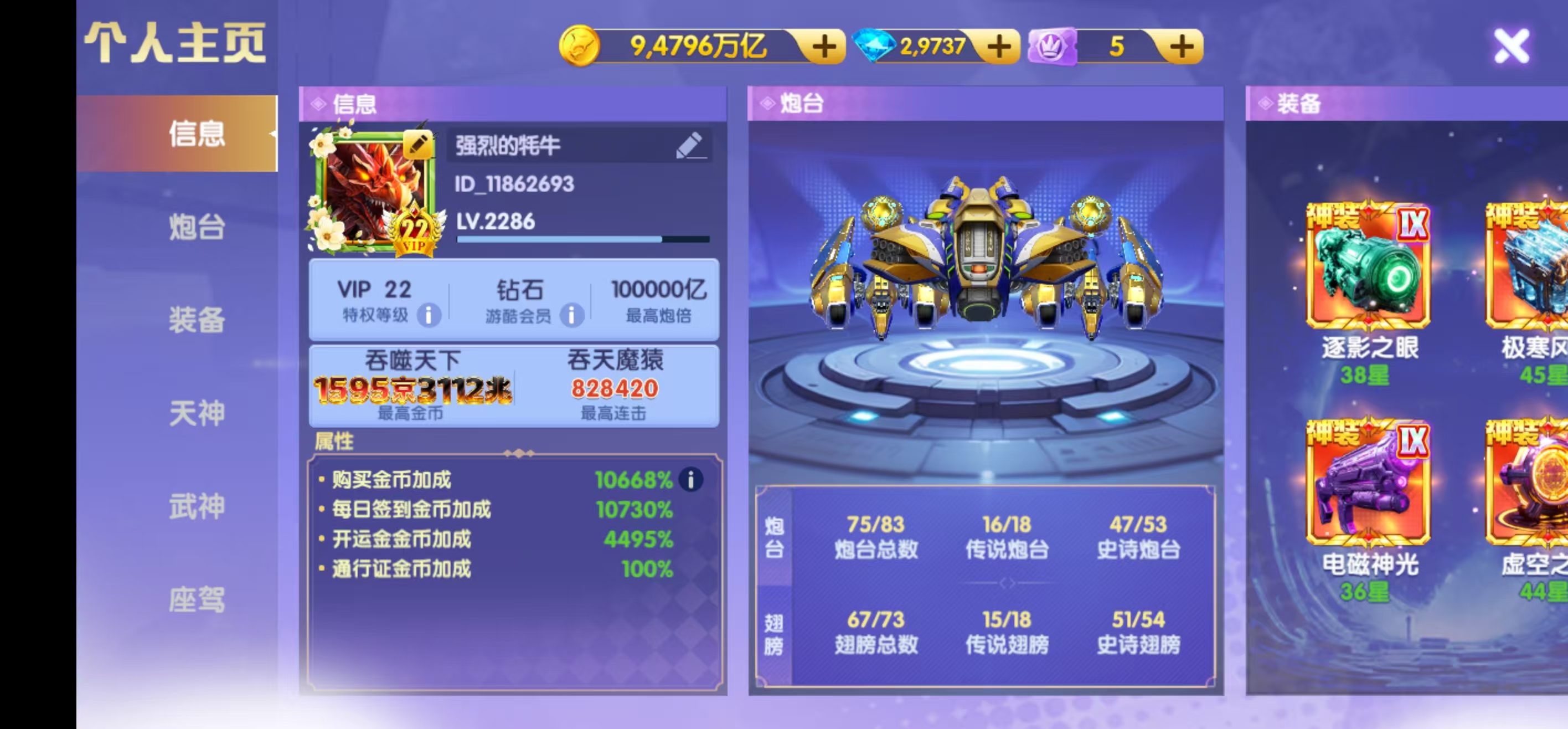 官方qqv22加成10668 天神武神一片红天神觉醒彩 五福全6星