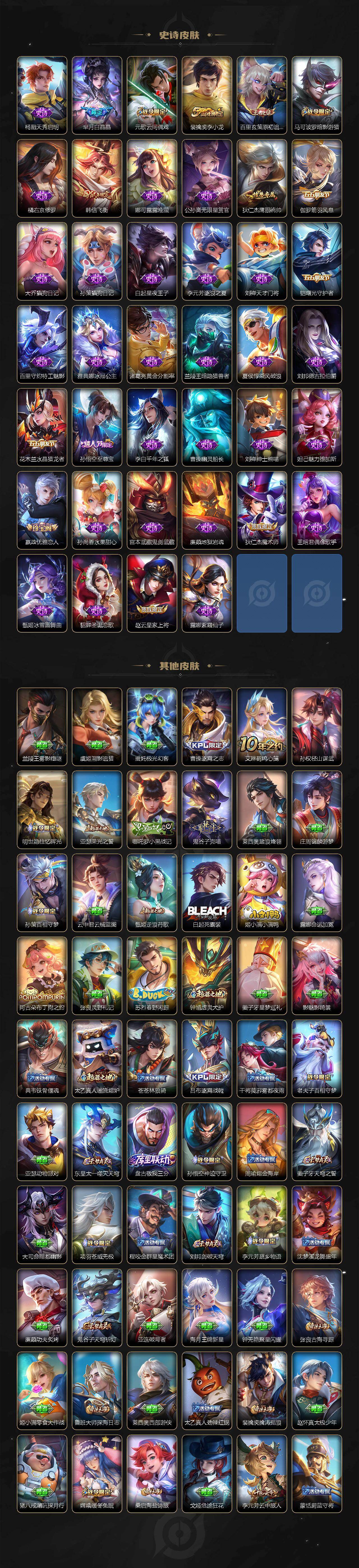 可改实名/国服暃/国服廉颇/金标万战娜可露露/金标万战韩信/金标万战马可波罗/金标橘右京/金标刘邦/金标镜/金标钟馗/金标太乙真人/252皮肤2典藏1无双1珍品传说29传说