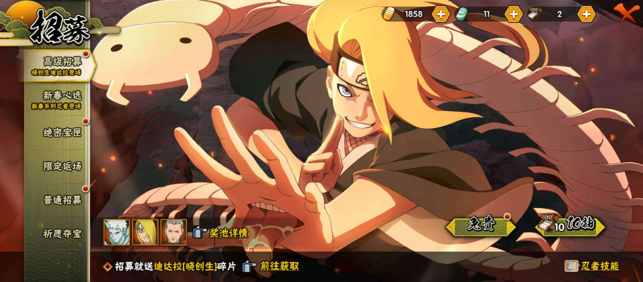 【A级忍者】:飞段(2星),机械鸣人「初始形态」(2星),旗木卡卡西「忍界大战」(2星),旗木卡卡西「幻之真容」(2星),旗木卡卡西「神威对决」