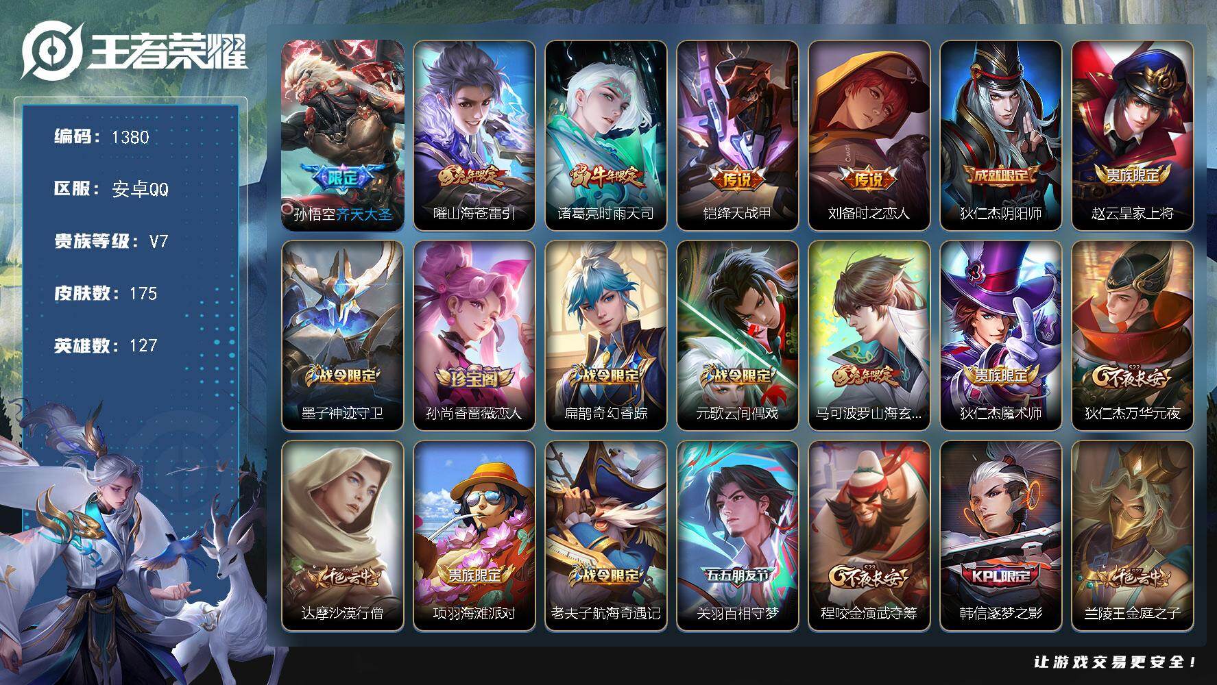 安卓Q-V7--127英雄-175皮肤-5传说-49史诗
