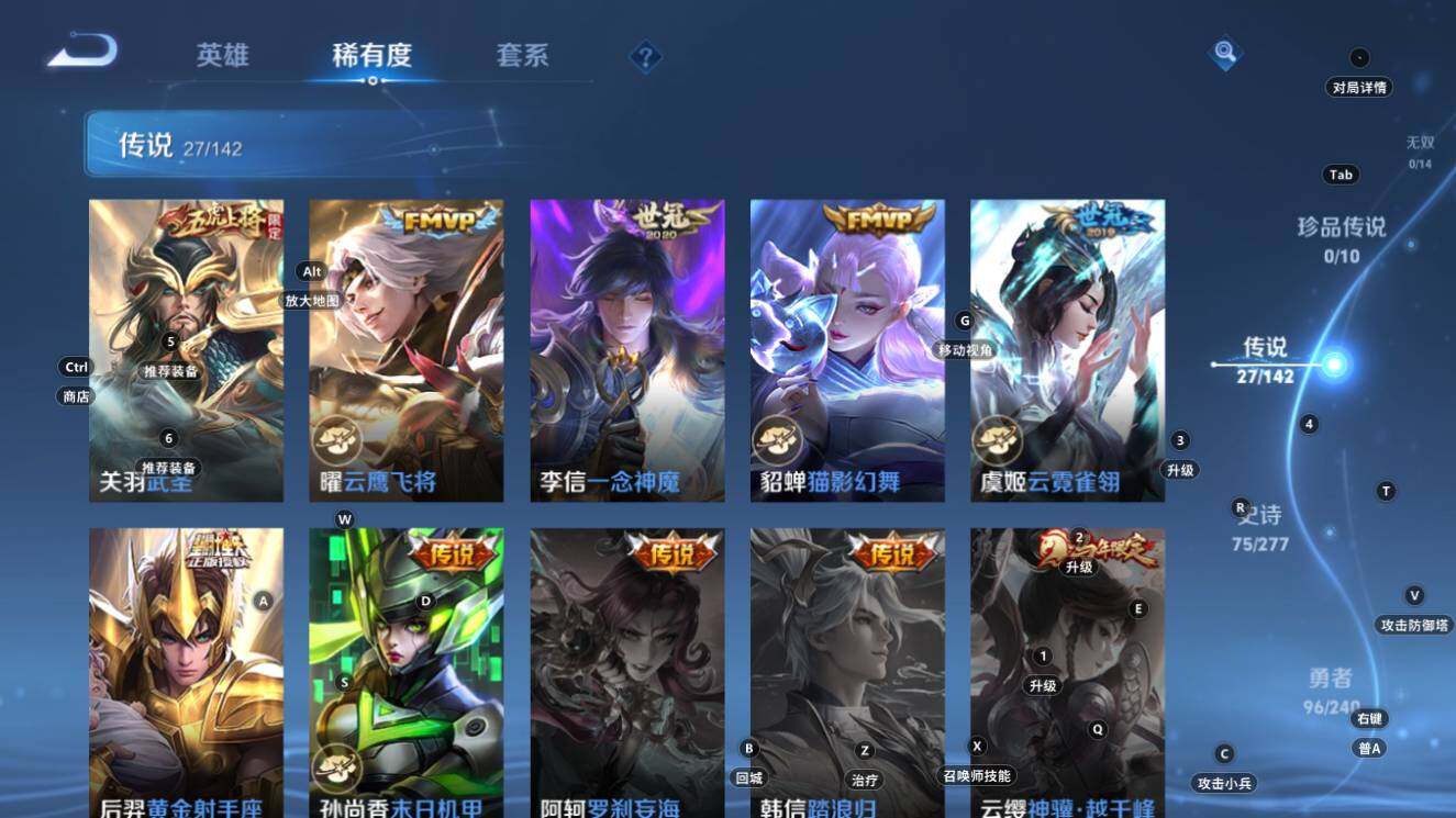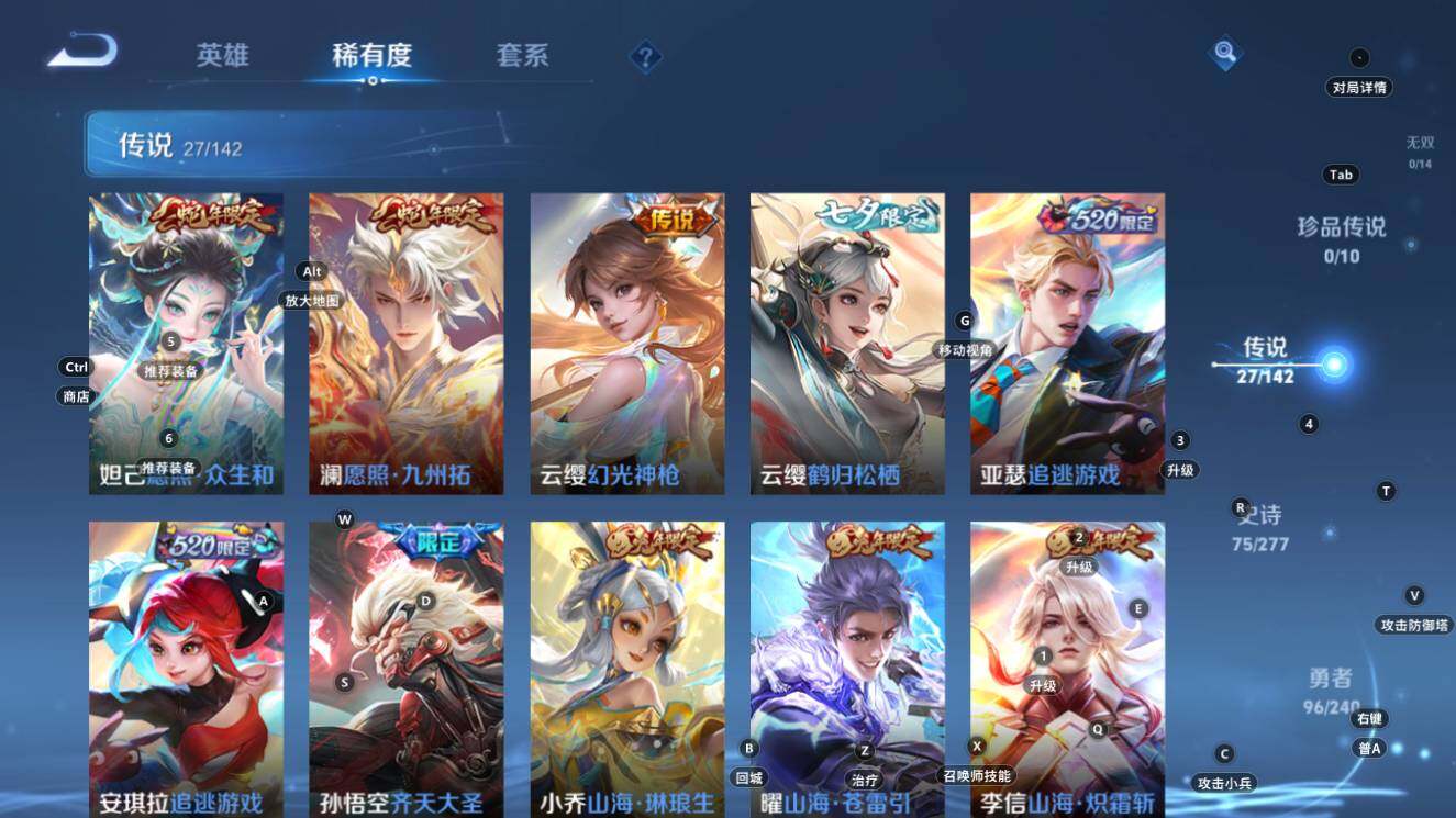 【传说皮肤】:妲己愿照众生和,澜愿照九州拓,云缨幻光神枪,云缨鹤归松栖,亚瑟追逃游戏,安琪拉追逃游戏,孙悟空齐天大圣,小乔山海琳琅生,曜山海苍雷引,李信山海炽霜斩,吕布怒海麟威