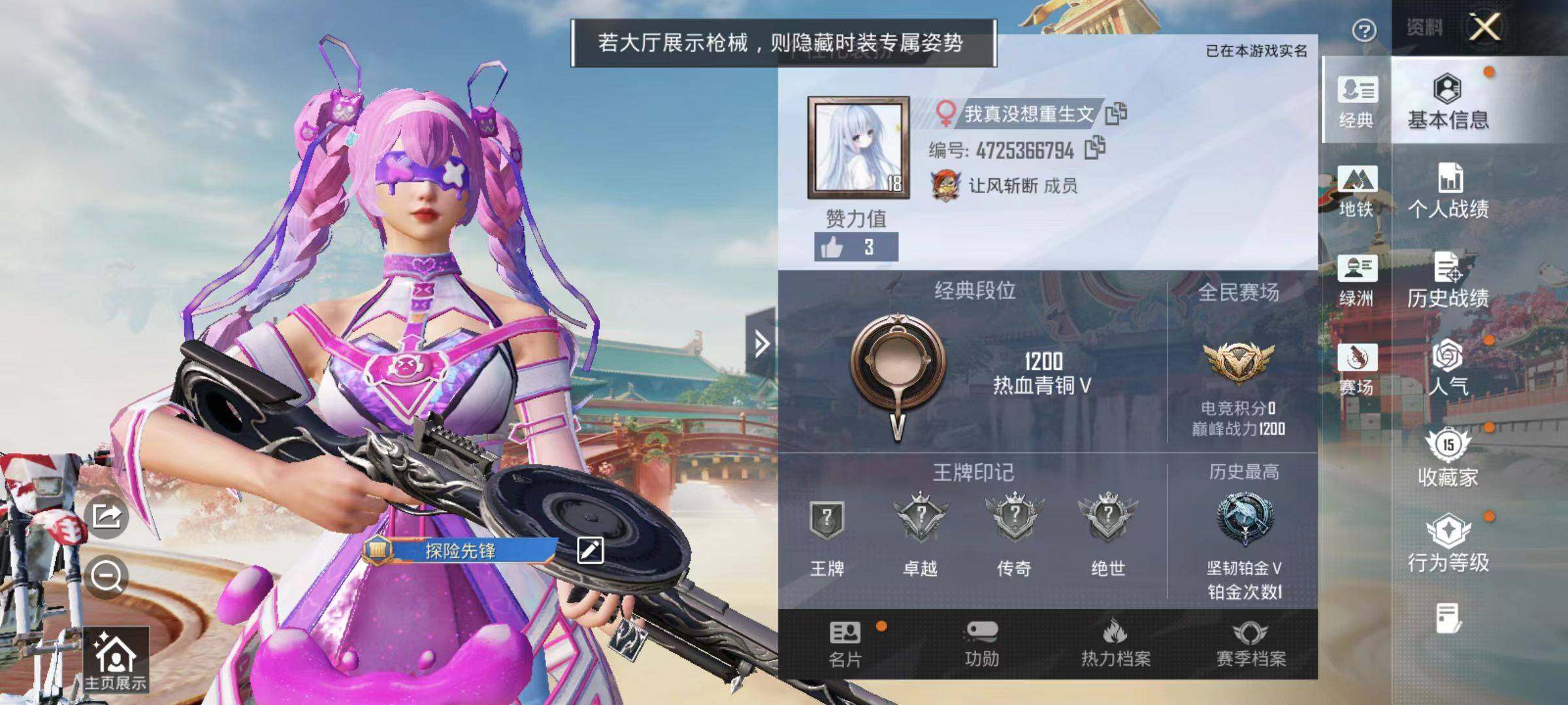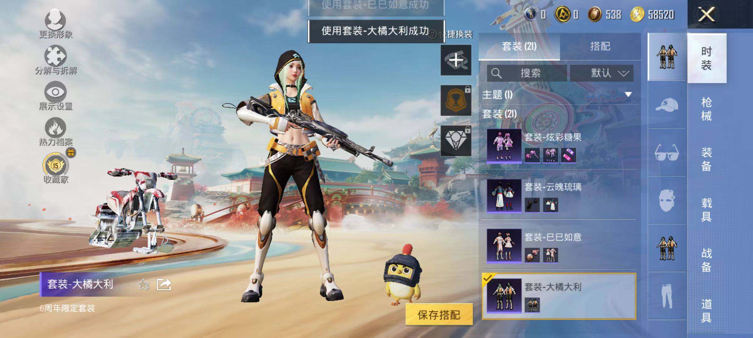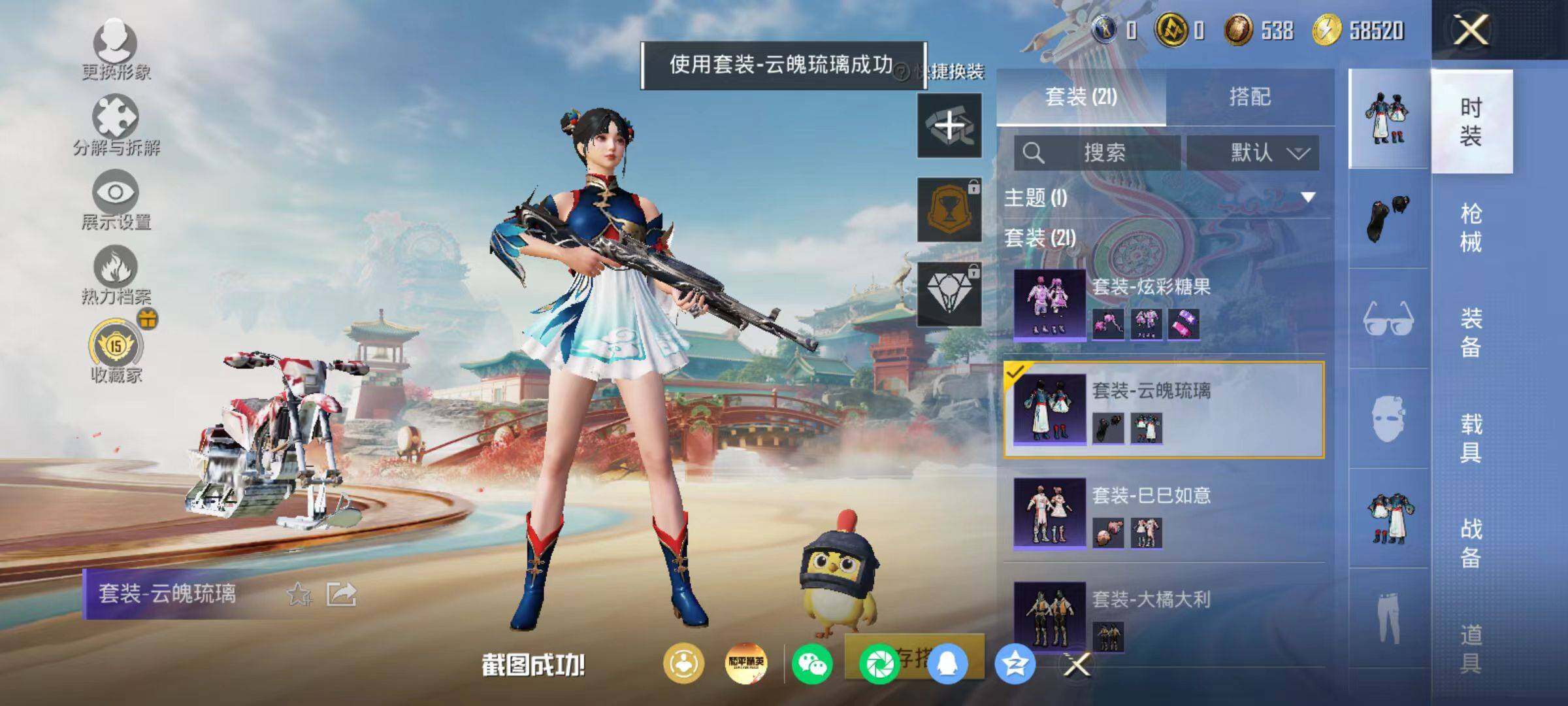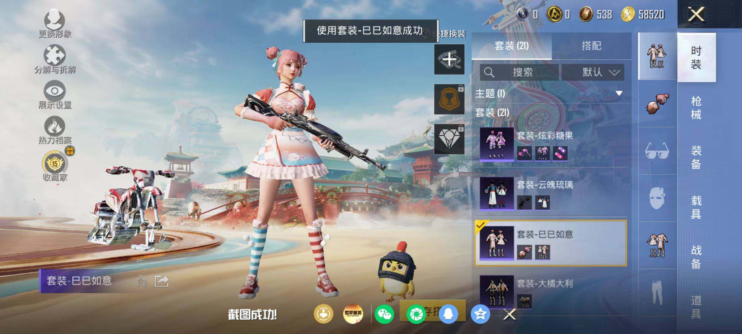 21套装/枪械2/装备29/战备23/热力值7840/四级Kar98K-巳巳如意/五级DP-28-豹影疾电/Kar98K-巳巳如意/DP-28-豹影疾电/炫彩糖果飞行器/炫彩糖果降落伞/巳巳如意/套装-炫彩糖果/M16A4-幻世战舞者/SCAR-L-炫彩节奏/AUG-耀粉歌者/Mk47-虹云熊熊/UZI-天降萌叽/Kar98K-洛神天依/VSS-星之彼岸/Mini14-耀粉歌者/S12K-夜灯/