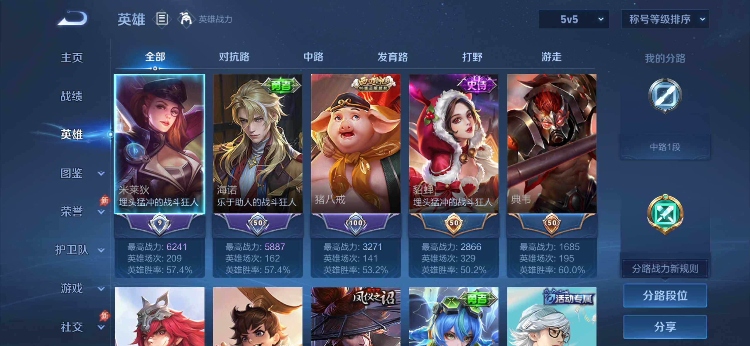 【16776841】贵族1/皮肤121/传说3/史诗21/英雄129/敖隐全皮