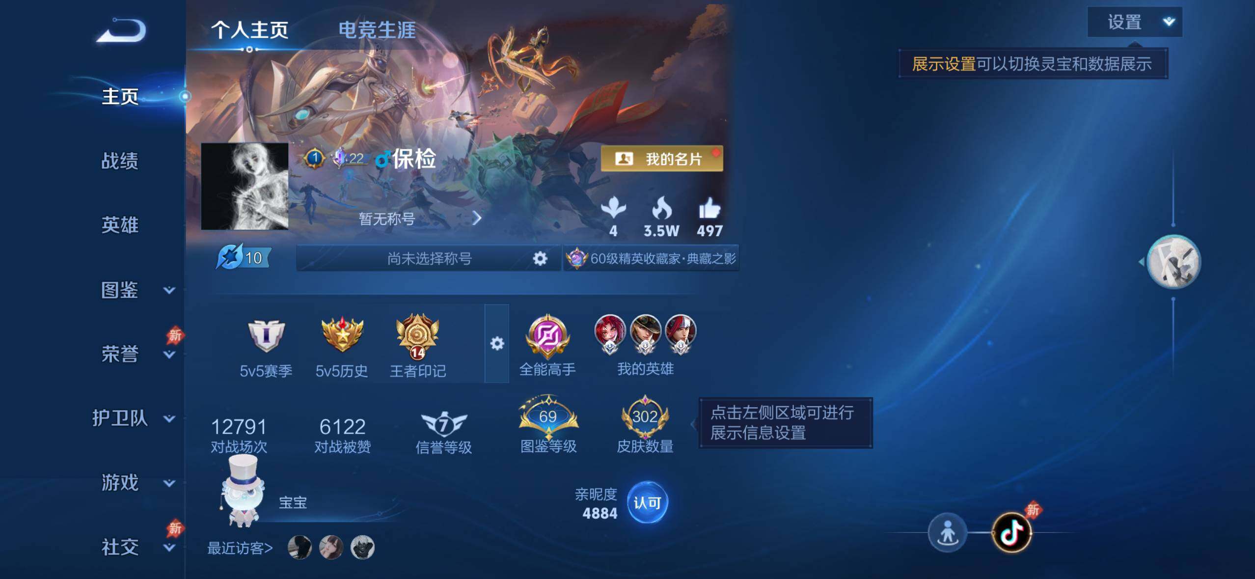 【16776842】贵族8/皮肤302/典藏1/传说12/史诗81/英雄129