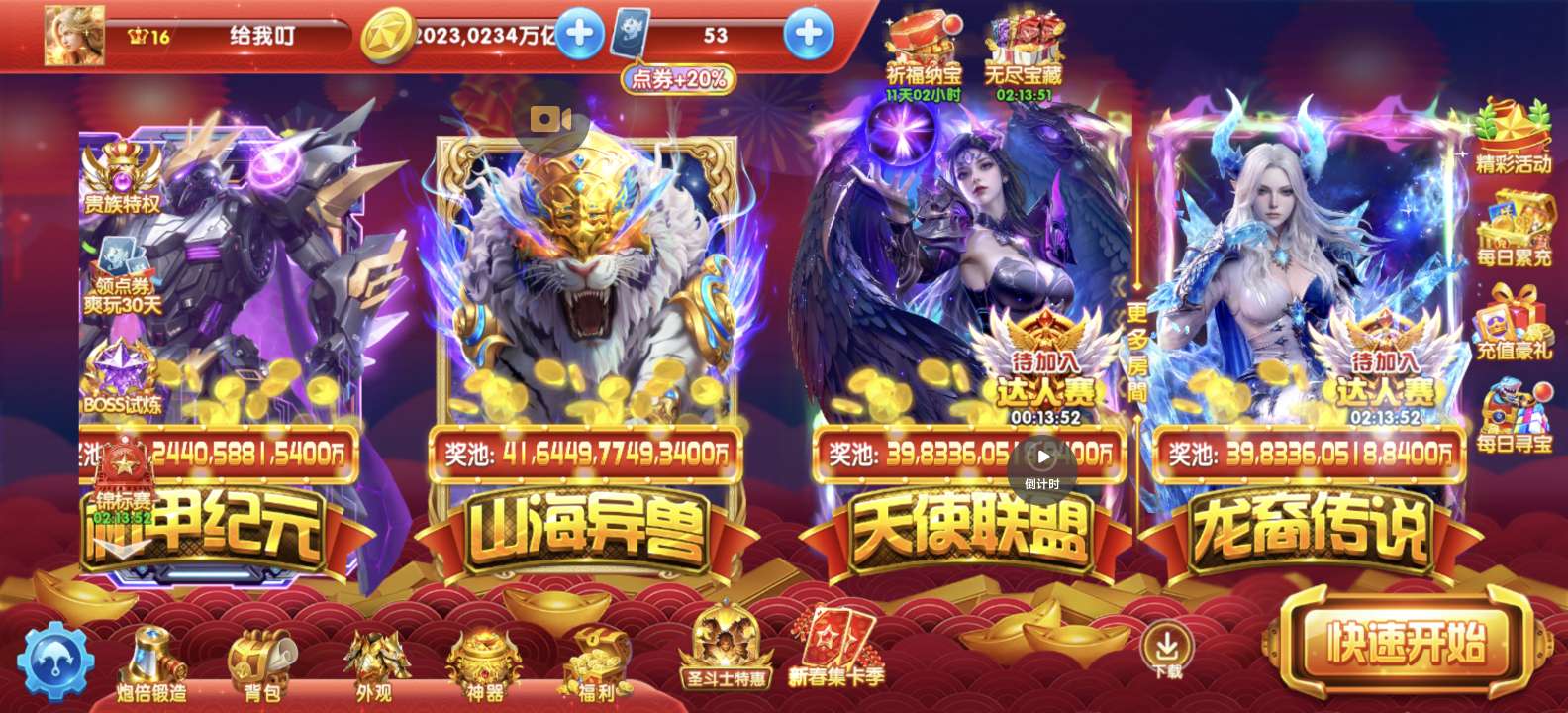 此号爆率超高,经常救济上千兆。过年期间刚上过2000兆,上分期嘎嘎叮,机甲翻倍概率堪比15套很猛的