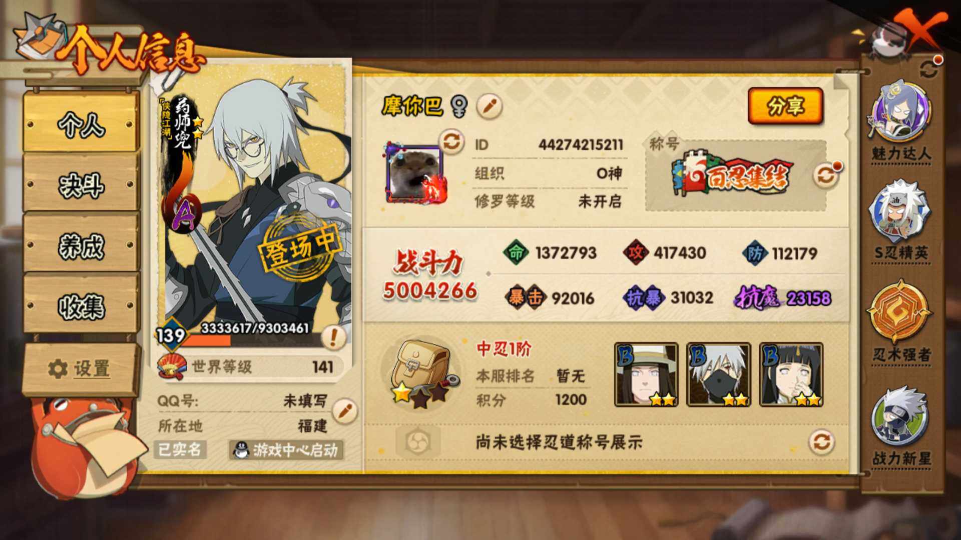V13 14S 46A 500万战力 热门A面麻 侠隐佐助 百豪樱 忍战凯 新
