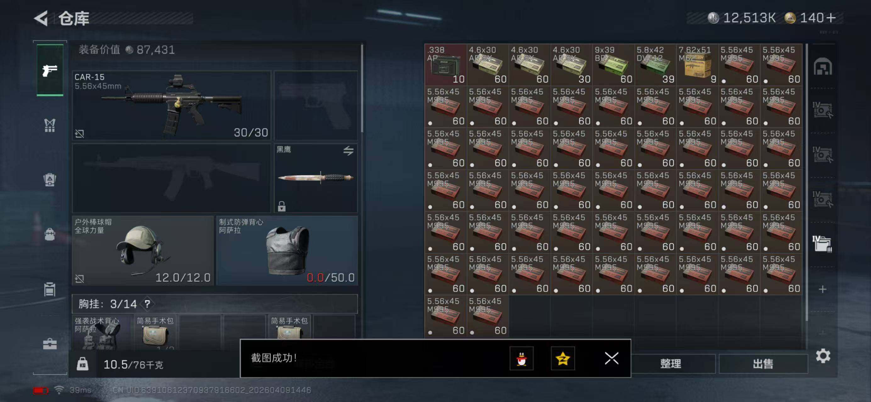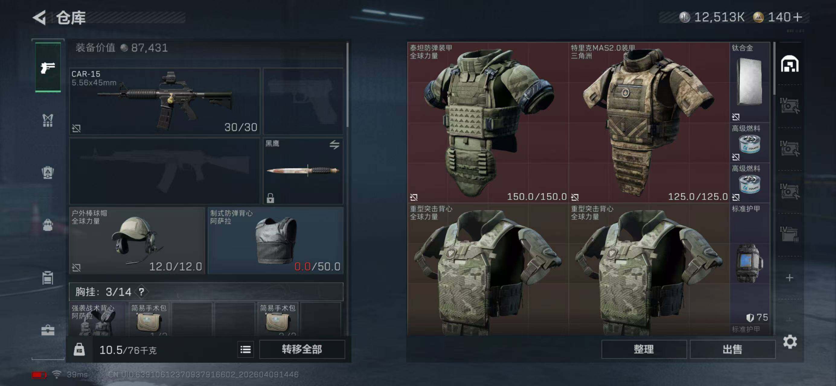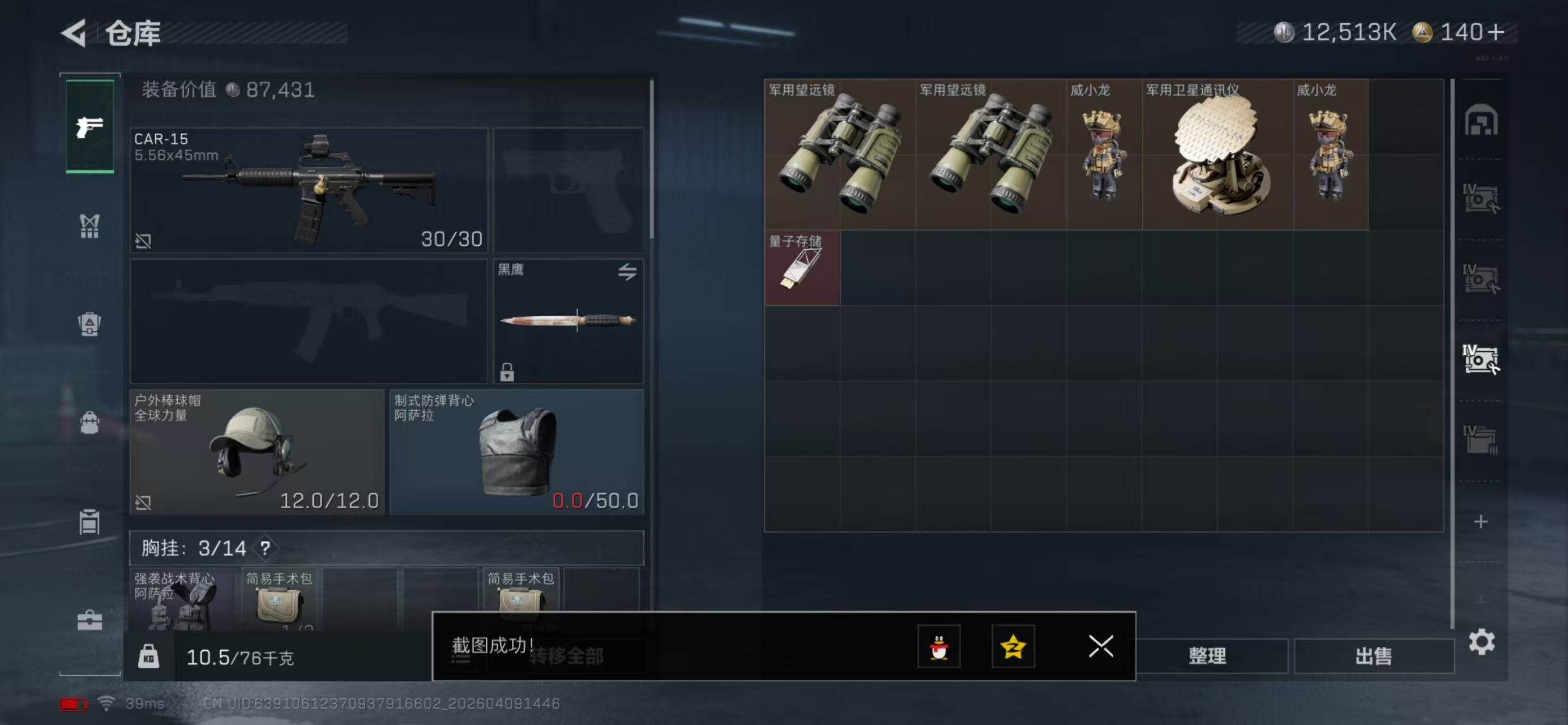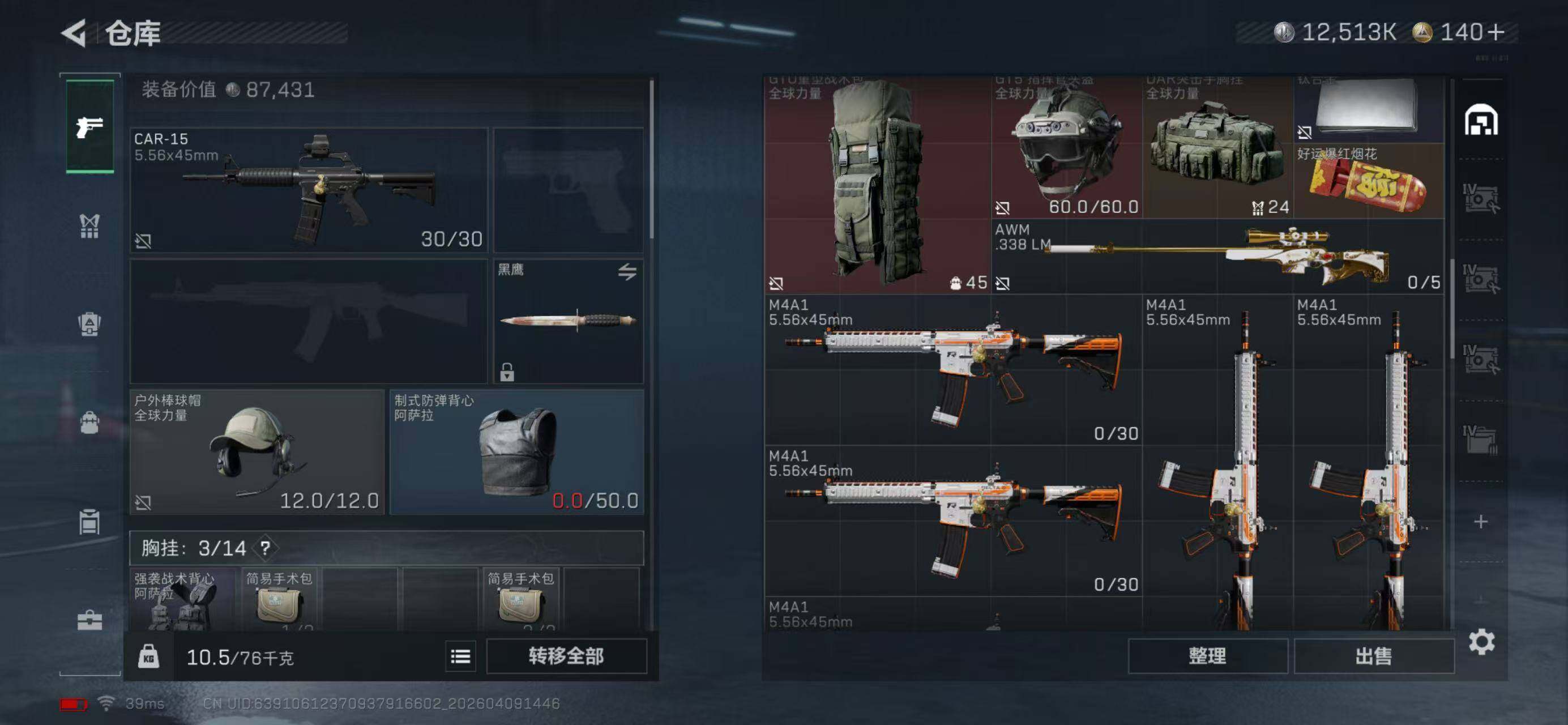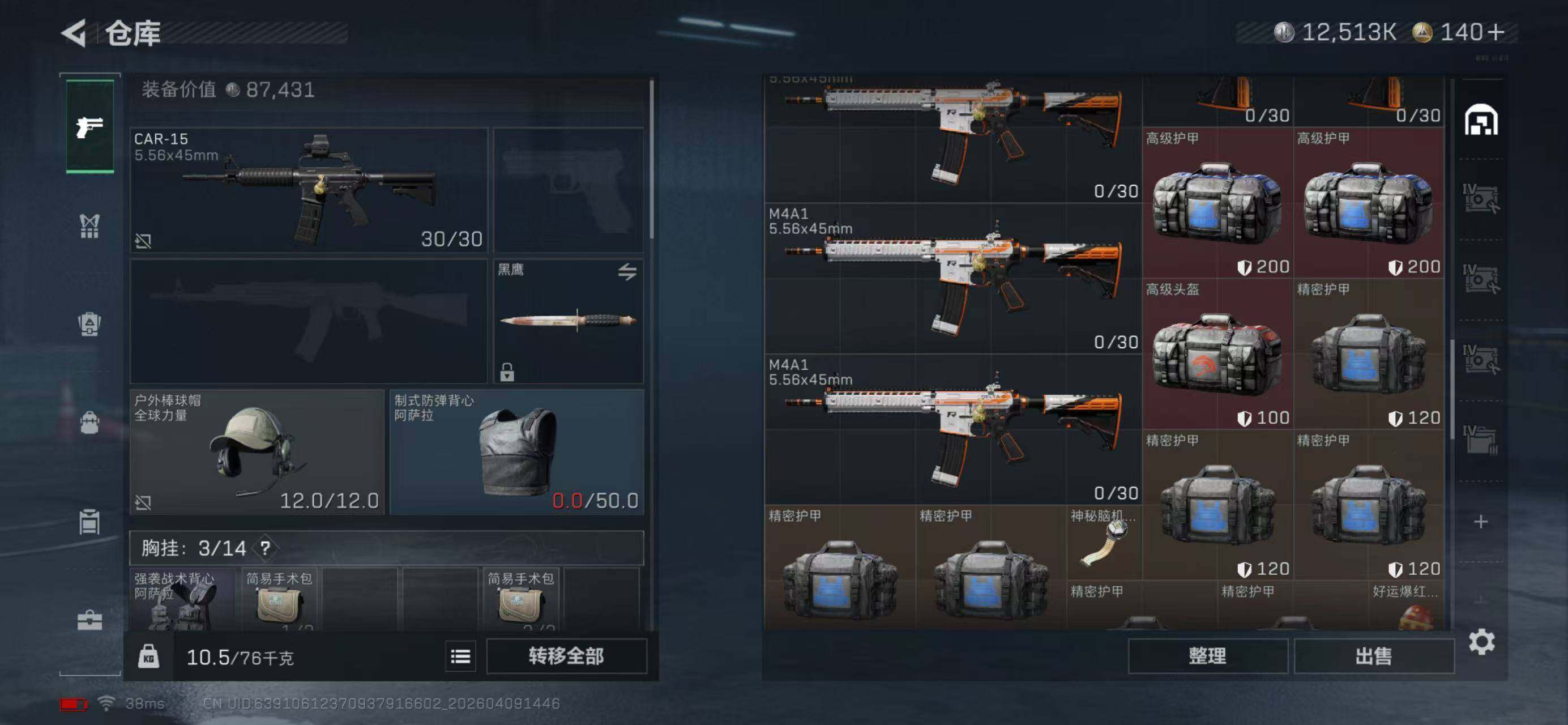 88m总资产-12513k哈夫币-54烽火等级-铂金-1战场等级-无军衔