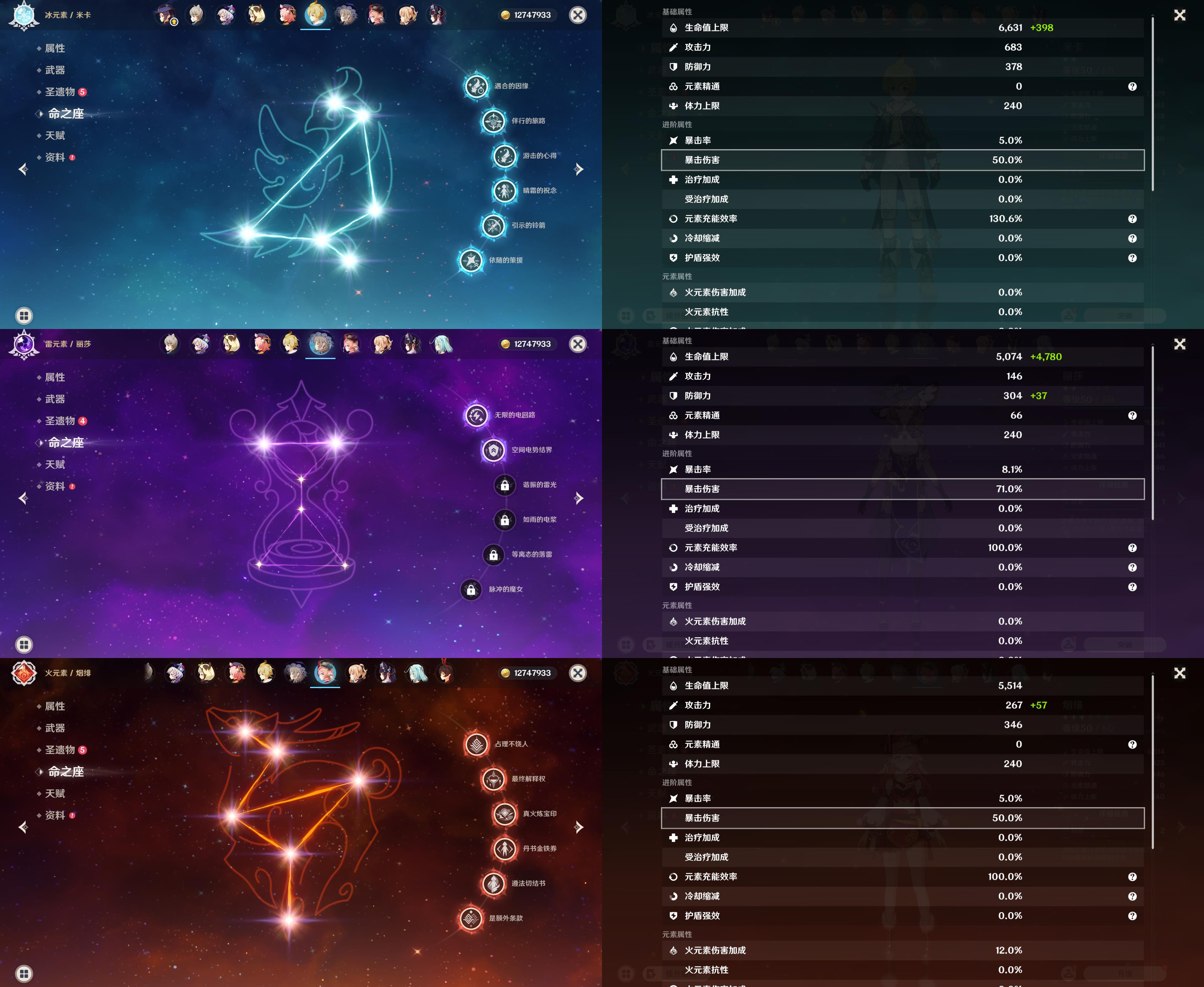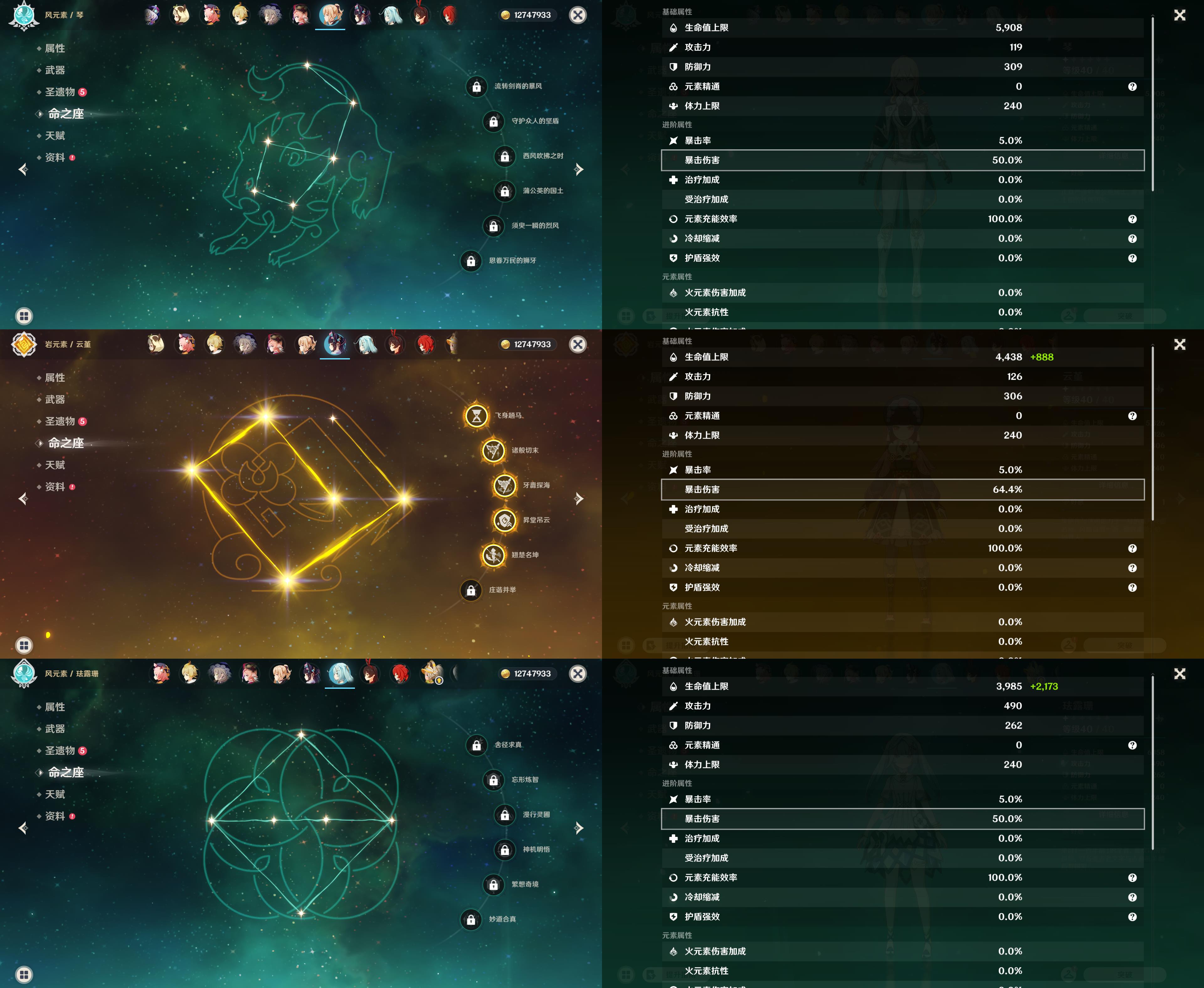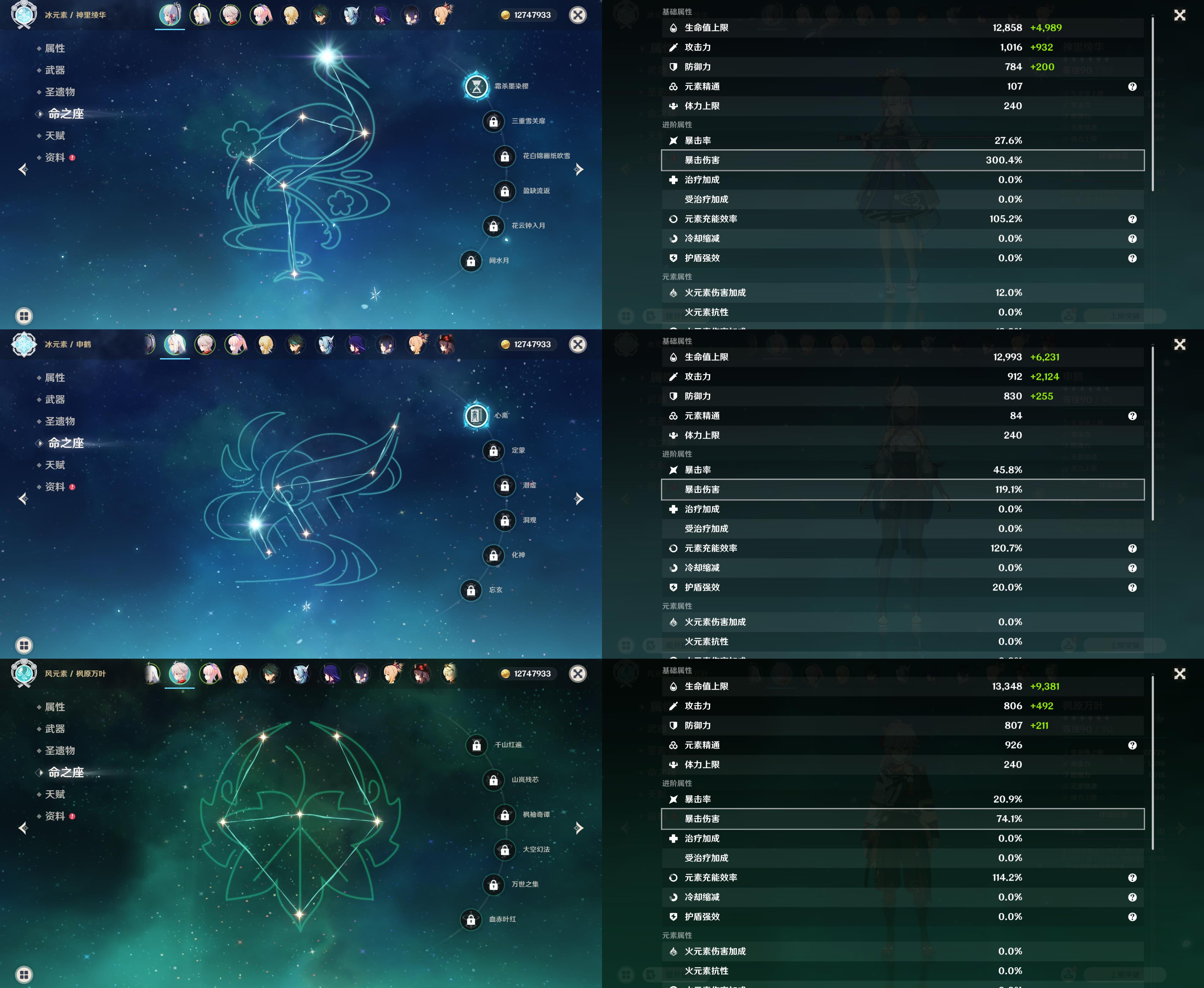 58级/40黄/女主/16个五星角色/12个五星武器/1命神里绫