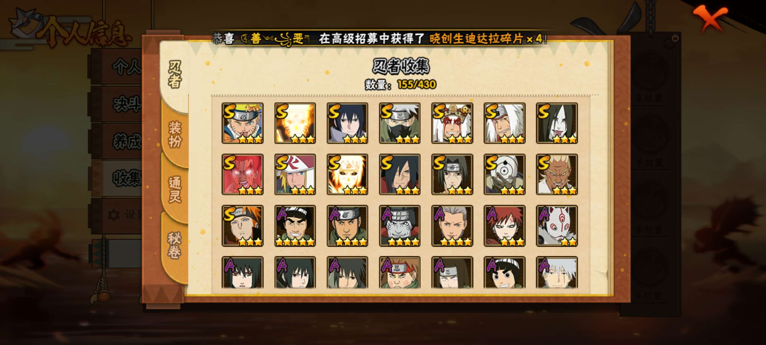 MHY4162【可二次 S忍者15 A忍者31 通灵17】【安卓Q-2904区-145级-V4-726万战力】【S级】波风水门「九喇嘛连结」 大蛇丸 波风水门 漩涡鸣人·宇智波佐助 宇智波佐助「永恒万花筒」 宇智波鼬「须佐能乎」 自来也「传说中的三忍」 宇智波斑「白面具」 旗木卡卡西「须佐能乎」 艾「忍界大战」 佩恩「天道」 迈特凯「死门」 漩涡鸣人「九喇嘛连结」 宇智波斑「秽土转生·解」 自来也「舞之豪杰」【A级】波风水门「青年」 飞段 蝎 飞段「死司凭血」 迈特凯「青春爆炸」 旗木卡卡西「幻
