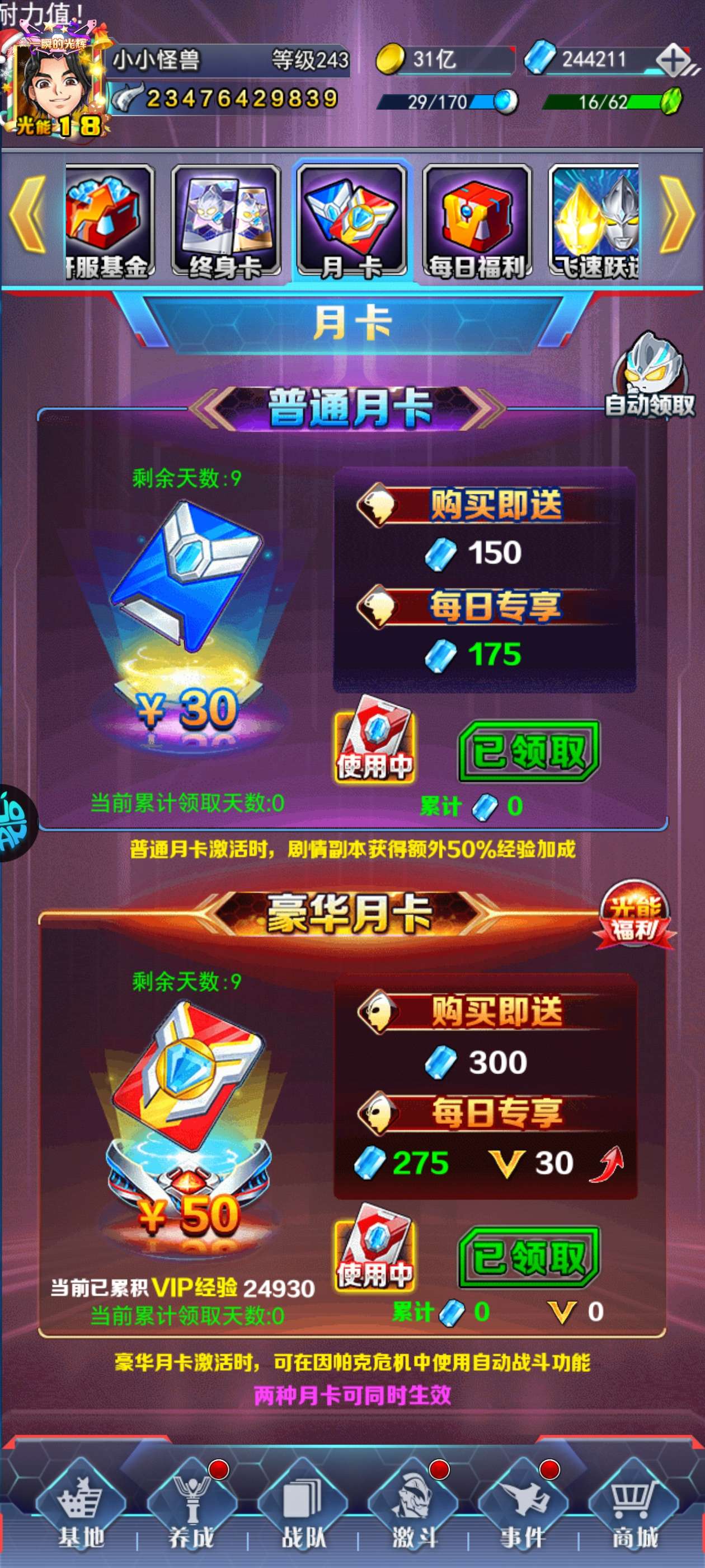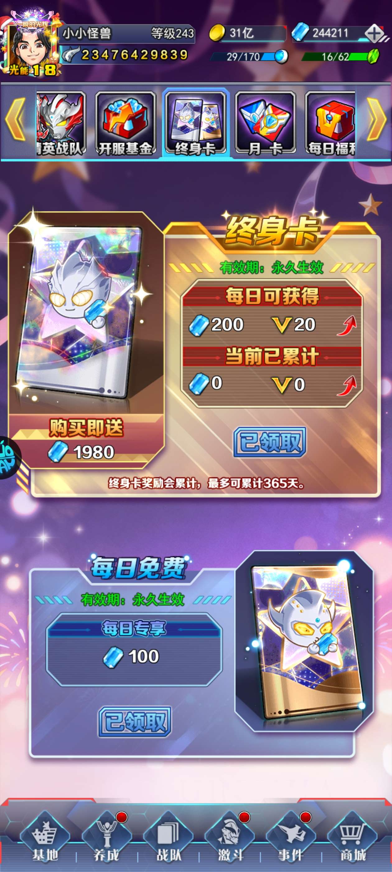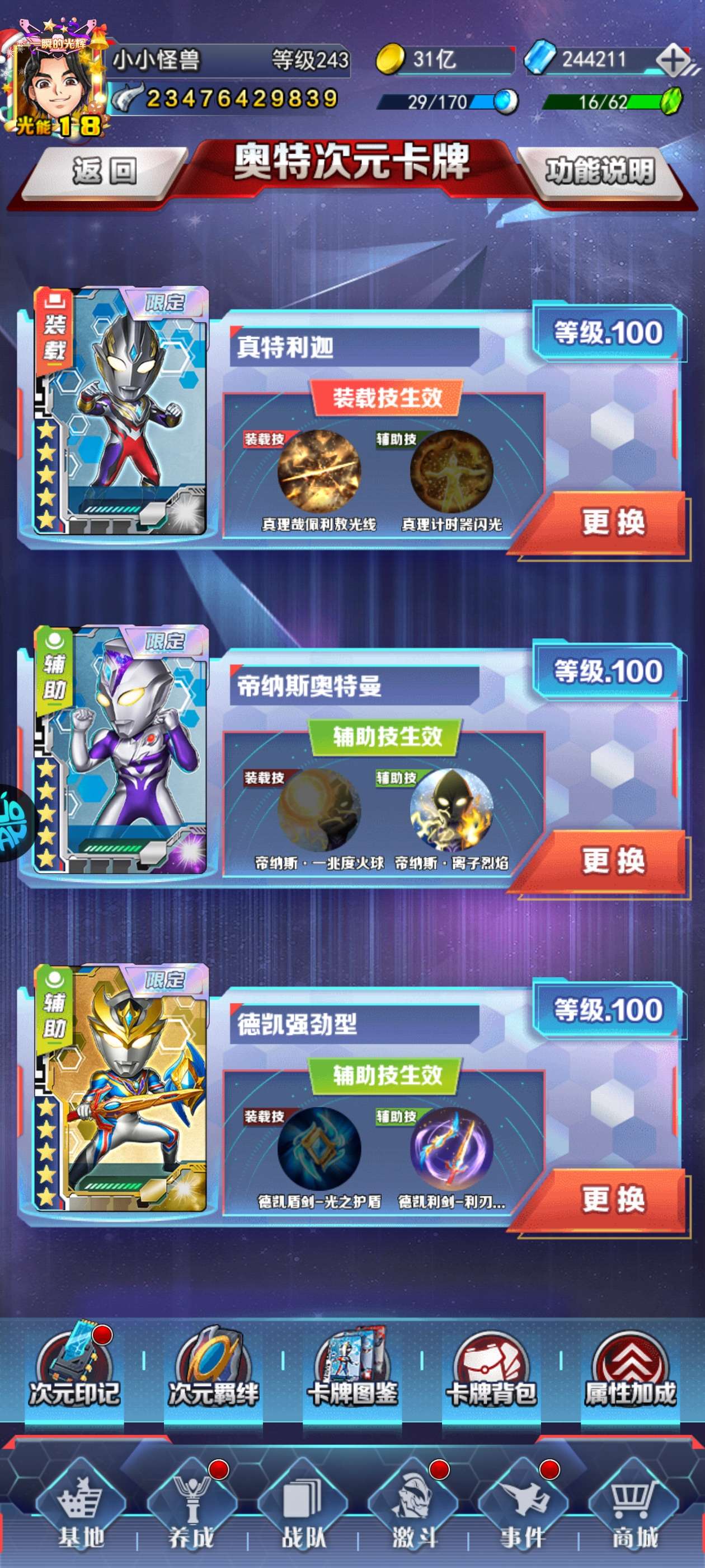 自助有5.6,终身卡也有,除了北流没有本命,三张满星次元卡,竞技场稳第五,同战随便打奥