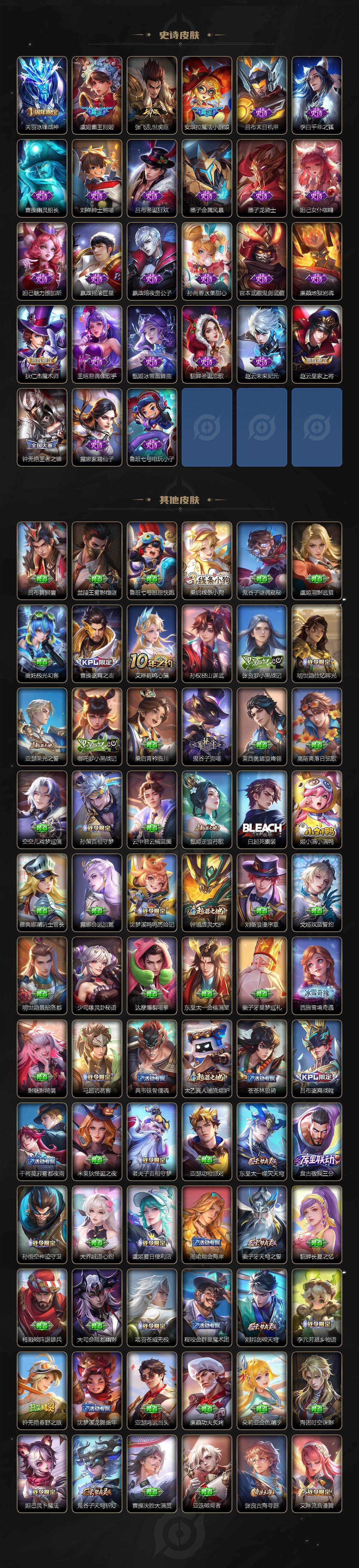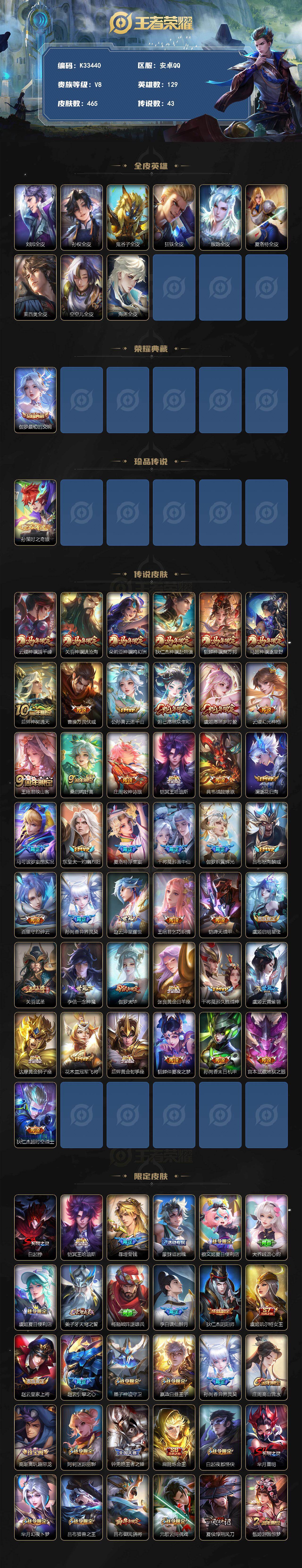 安卓Q-V8-最强王者段位-129英雄-465皮肤-1典藏皮肤-1珍品传说-43传说-139史诗
