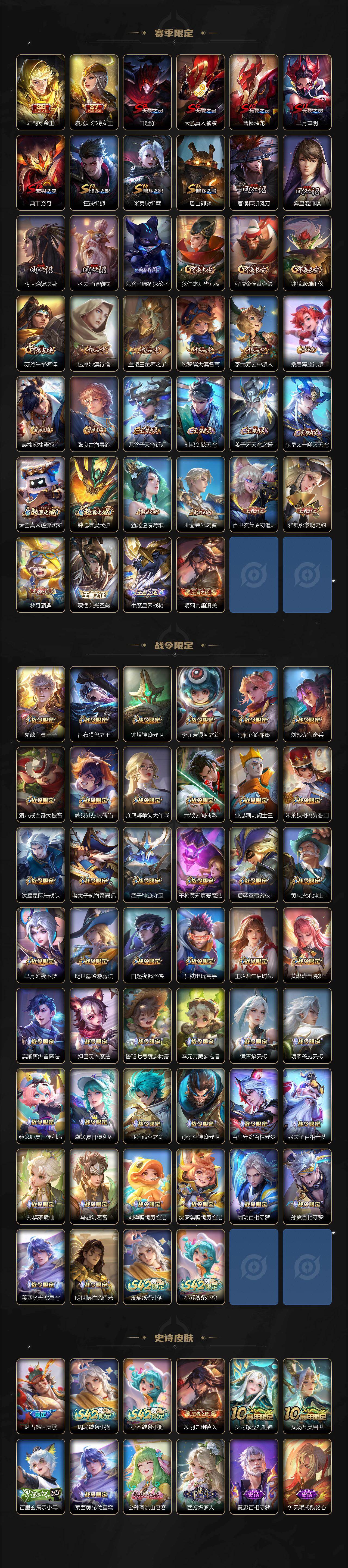 【英雄全皮】:刘邦全皮,孙权全皮,鬼谷子全皮,狂铁全皮,敖隐全皮,夏洛特全皮,莱西奥全皮,空空儿全皮,海诺全皮