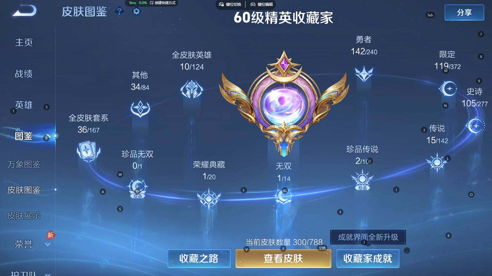 苹果Q-V7-至尊星耀II段位-129英雄-300皮肤-1典藏皮肤-1无双-2珍品传说-15传说-103史诗