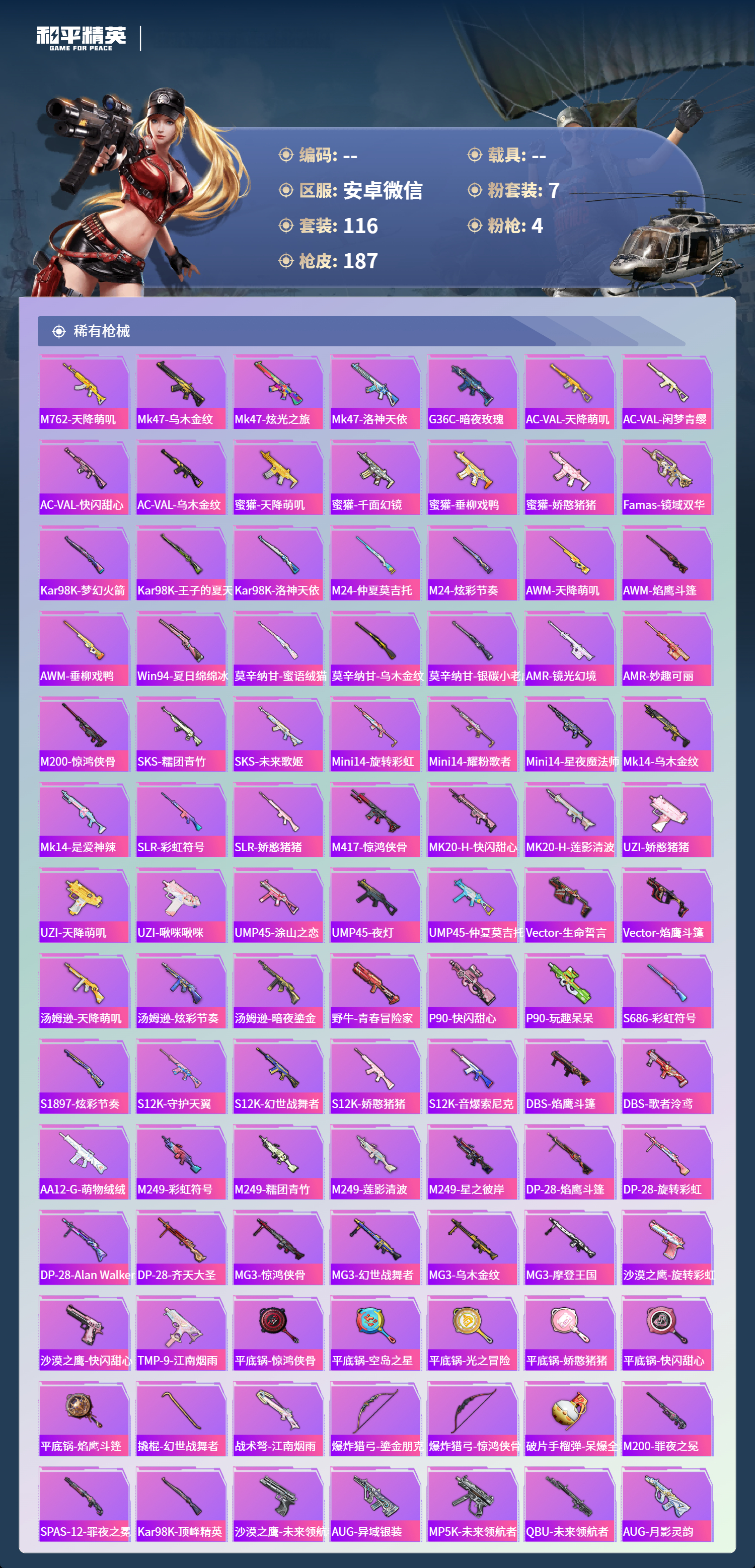 hs68557安卓微信-15王牌印记-7粉装-4特效枪-54813热力值-116套装-187枪皮-6卓越印记-3传奇印记
