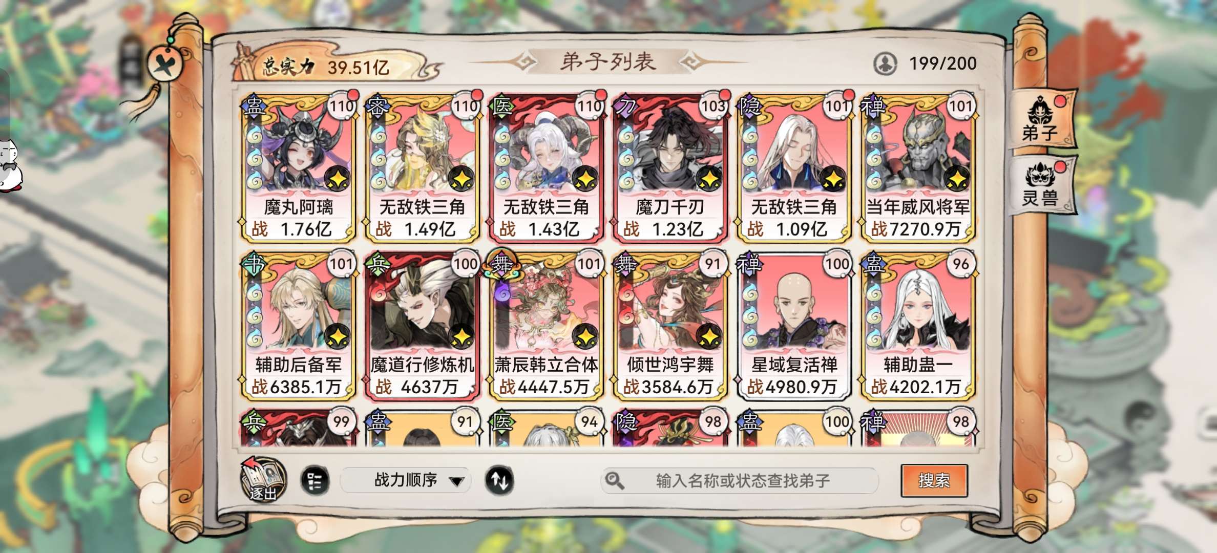 7亿多战力,大乘兵金船头,氪金功法焰花 松风,道兵很多,两万多年份人多,很多四阶法宝,3星星河,4星