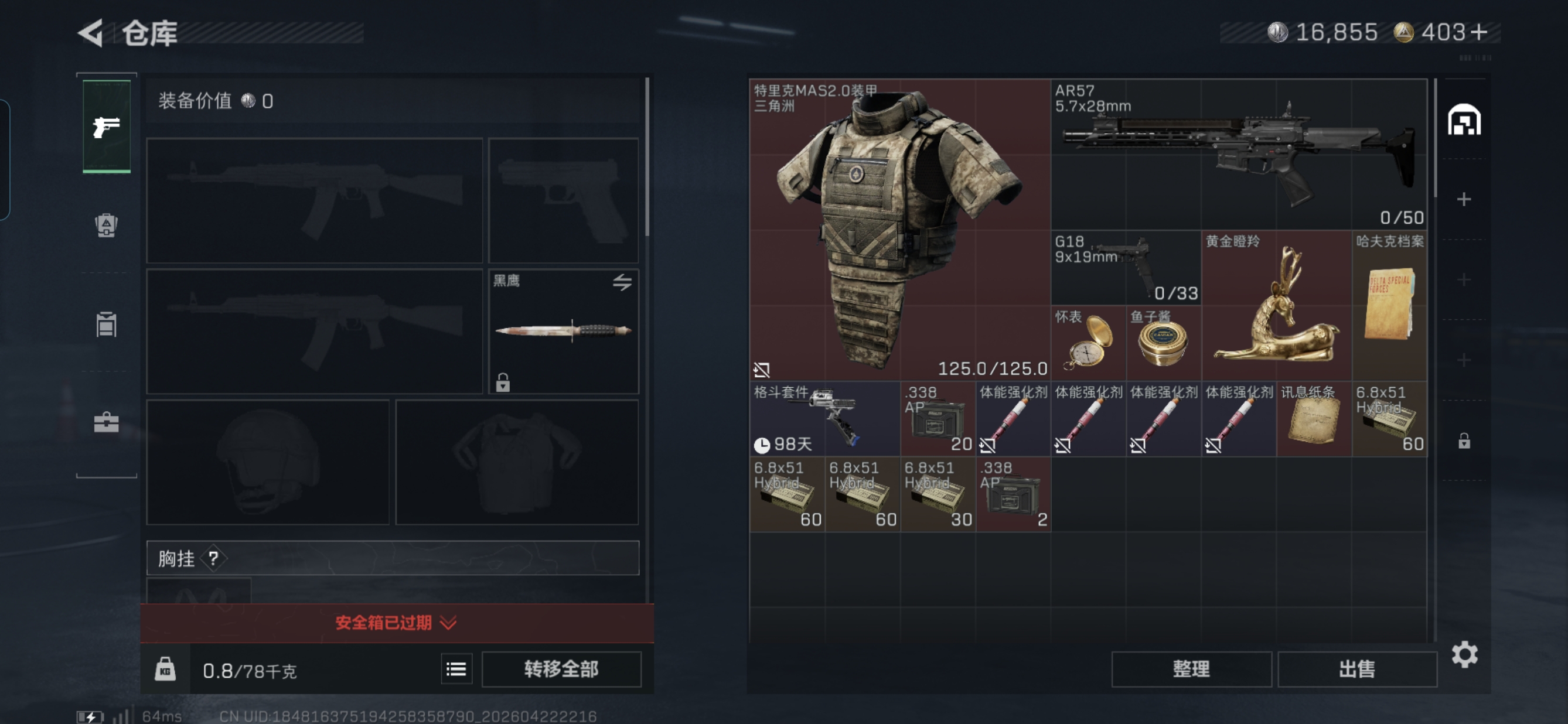 38级地图全开,有只黑白宠,异色魔狼,340球,附带中等特勤三角洲小号,20发aw