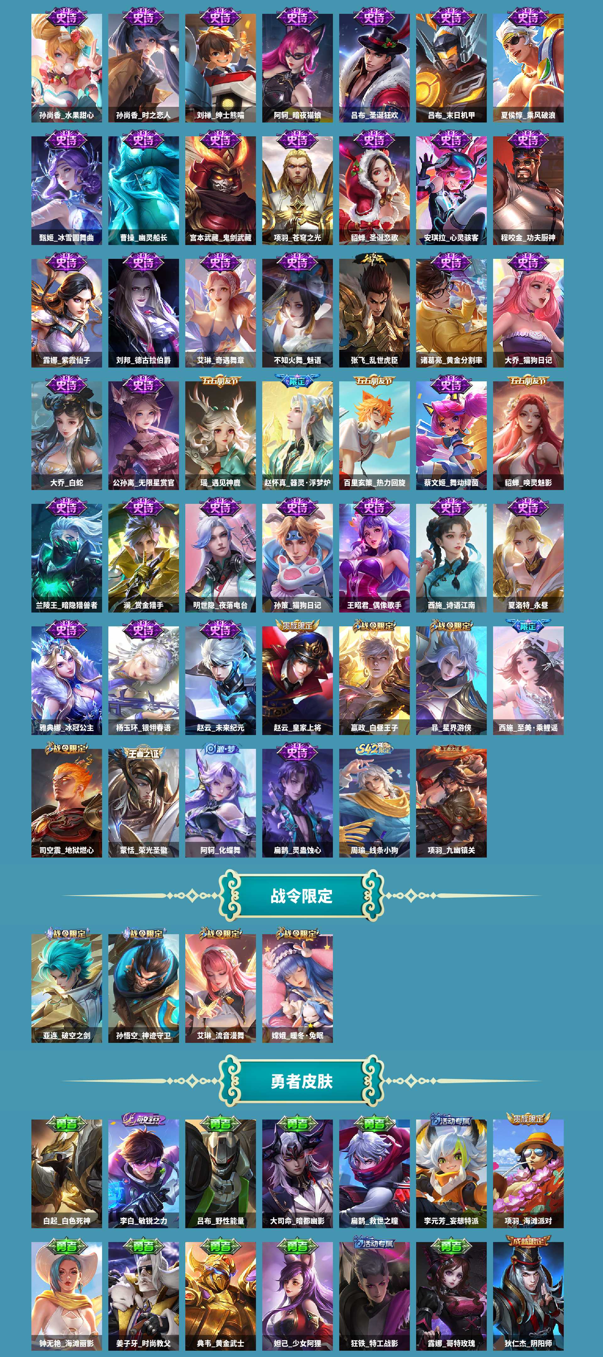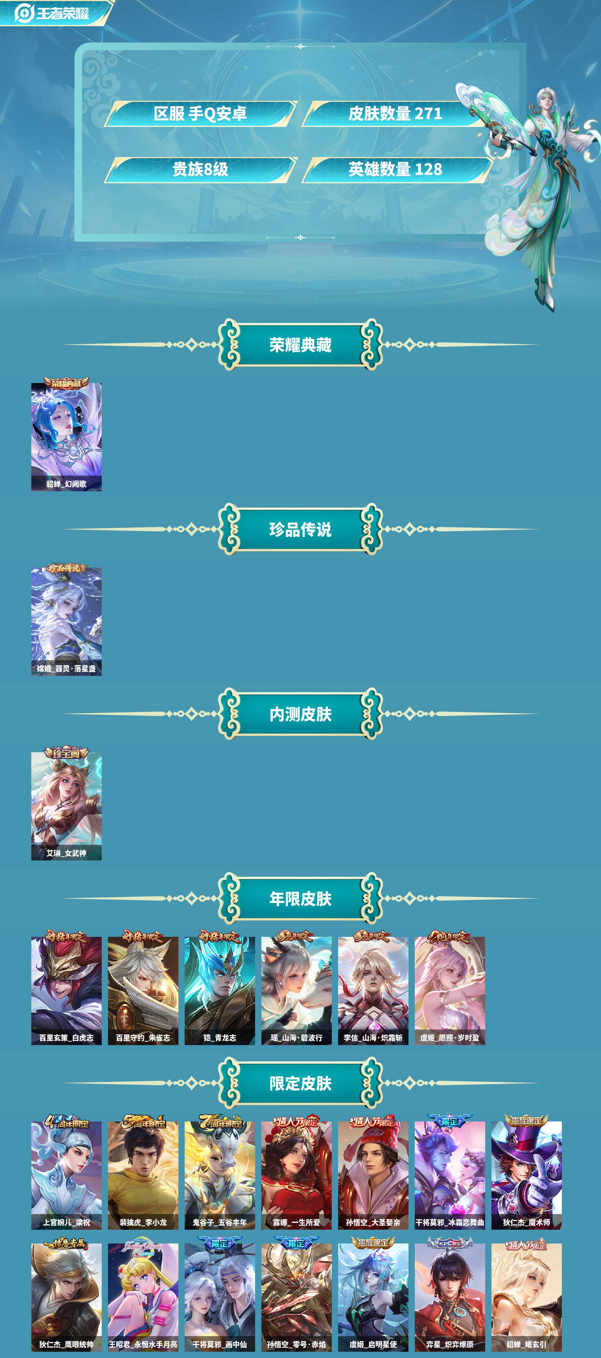 250皮1典藏1珍品33传差400v9皮肤数271传说皮肤数