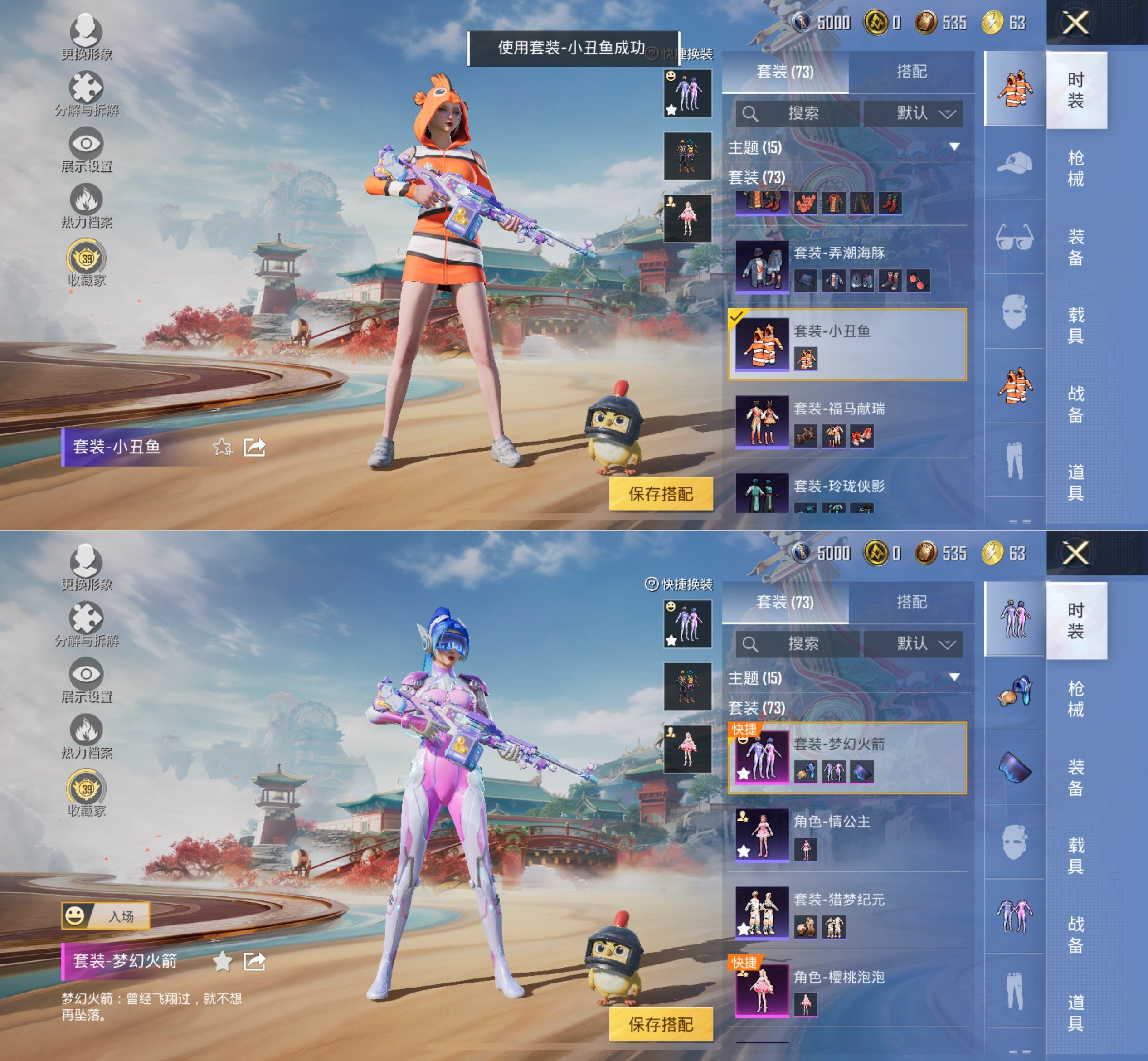 M1046786【身法号2粉装-3特效枪梦幻火箭 浪漫天命 深海小丑鱼 小丑鱼】有二次苹果手Q-2粉装-3特效枪-73套装-92枪皮-2王牌印记-超级王牌1星-27679热力值【2粉装】角色-樱桃泡泡 梦幻火箭【3特效枪】ACE32-萌骑漫游[3级] PKM-萌骑夺宝[5级] Mk14-福马献瑞[5级]【4稀有】浪漫天命 深海小丑鱼 小丑鱼 AKM-缤纷海域【4飞行器】梦幻火箭飞行器 马上有福飞行器 顶峰精英尾迹 荒原烈焰飞行器【2头盔】深海小丑鱼头盔 梦幻火箭头盔【156其它衣服和枪皮】特训学
