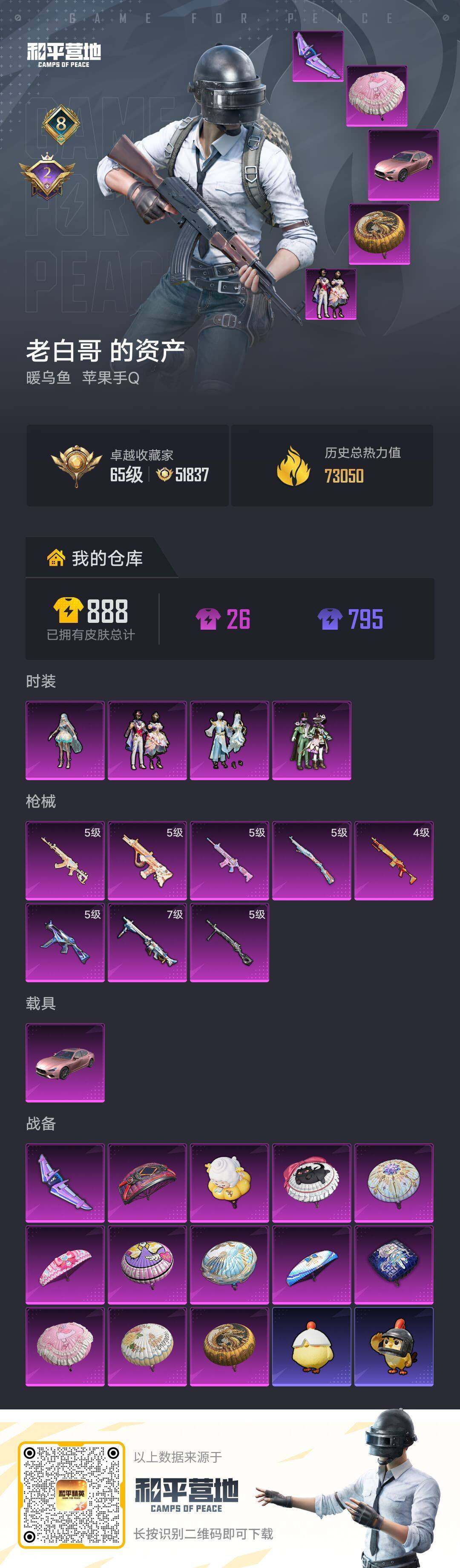 W15962 可立即换绑无需挂单养号 苹果 手Q-4粉装-8特效枪-1载具-1粉色飞行器-73050热力值-8王牌印记-203套装-233枪皮