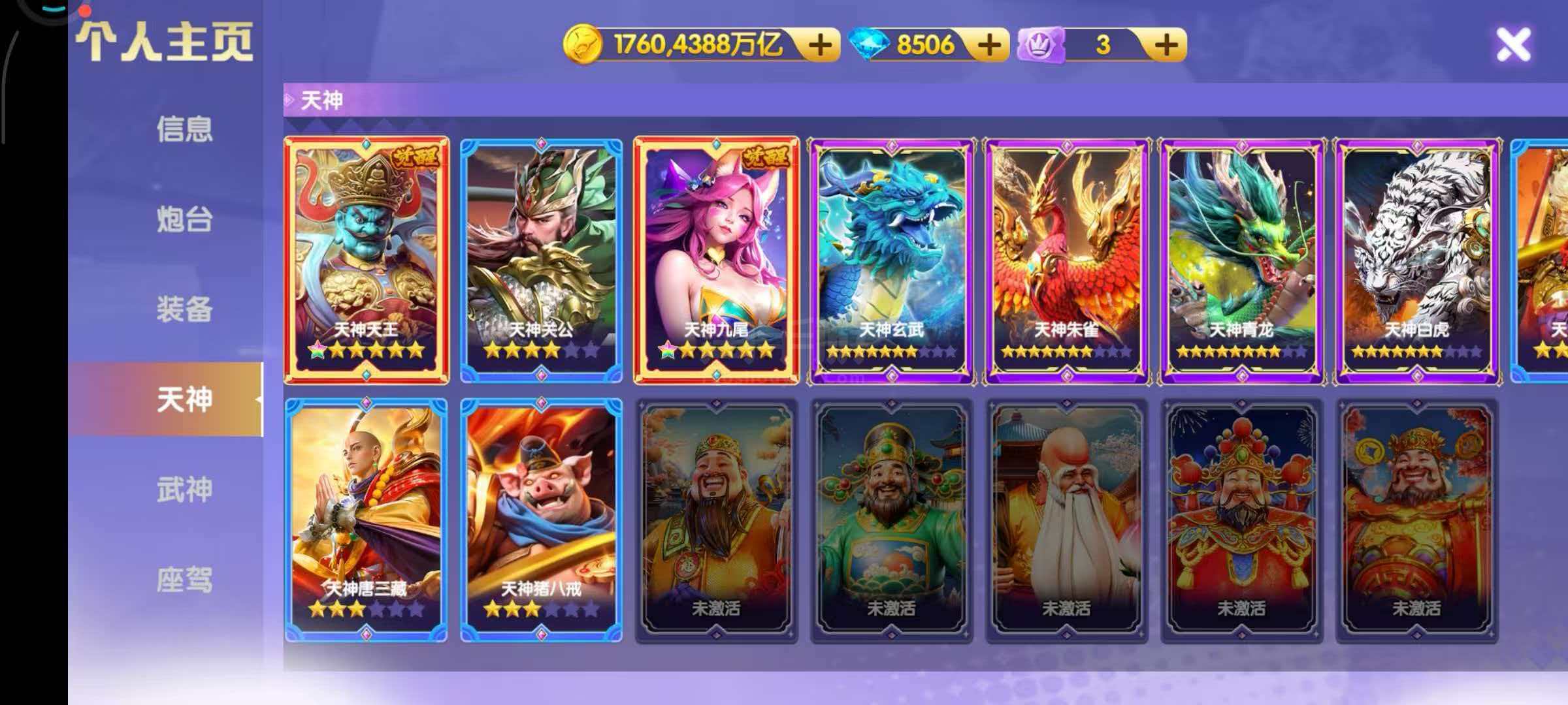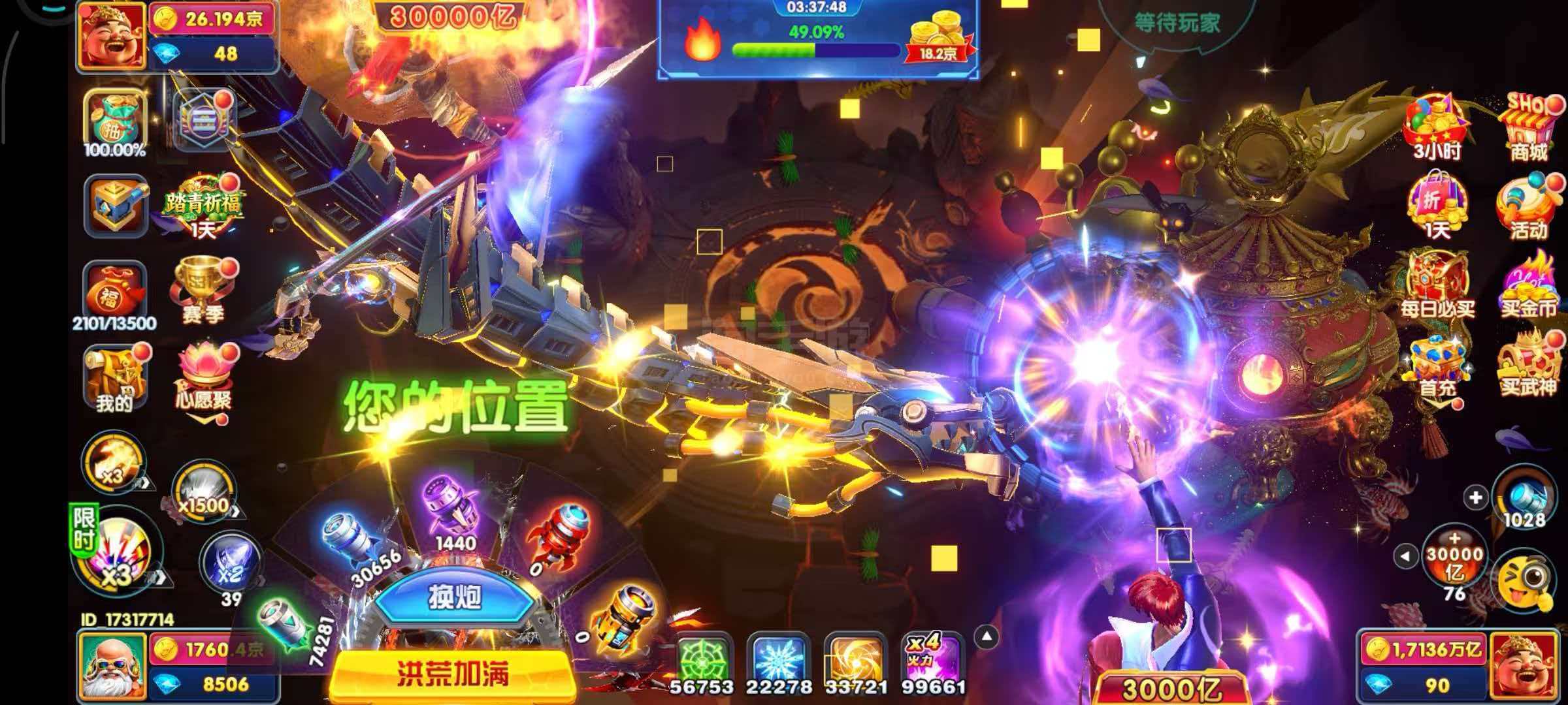 小米版买断号,1760京,3万炮,电磁神装25星,觉醒,黑炮10万,限时洪荒x3,三姐妹羁绊,武神2