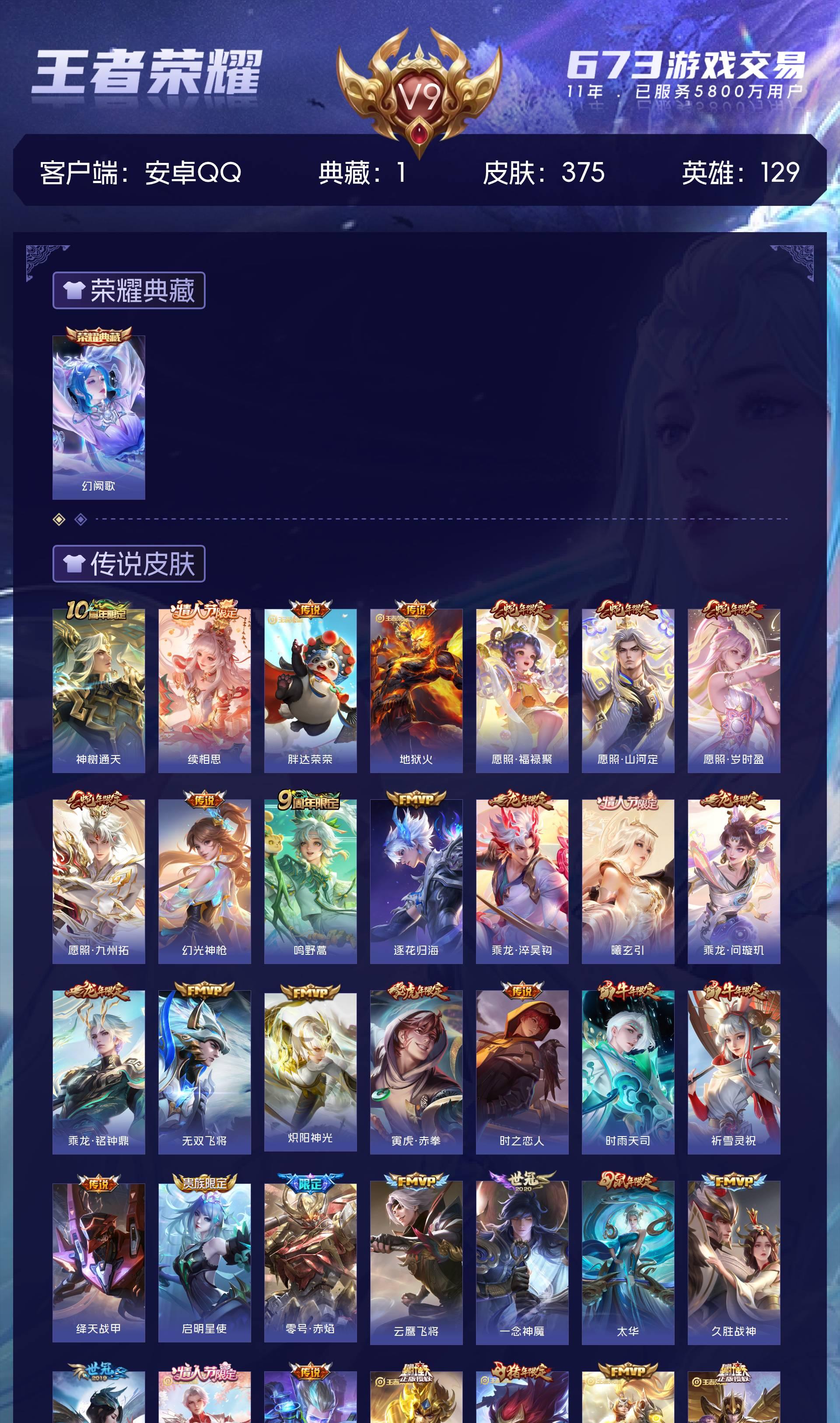V9 皮肤375 英雄129 永恒钻石 荣耀典藏1 传说40