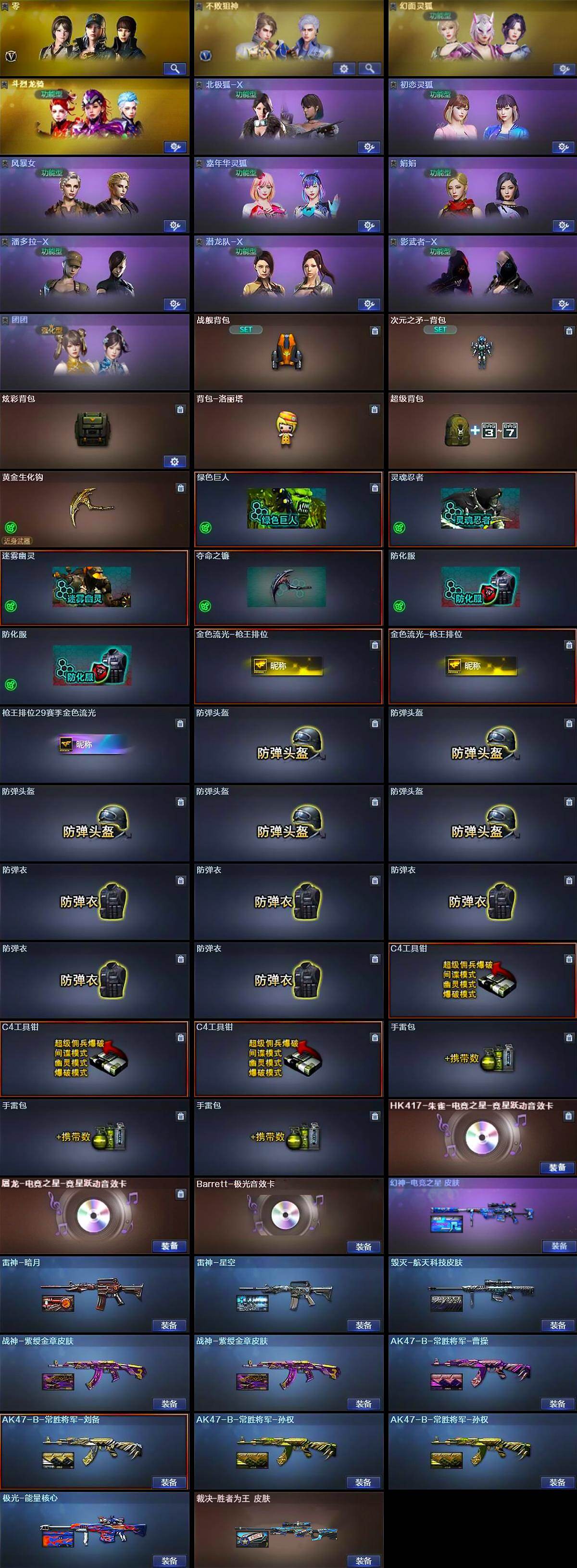 【皮肤】:幻神-电竞之星 皮肤,裁决-胜者为王 皮肤,雷神-暗月,雷神-星空,毁灭-航天科技皮肤,毁灭-英雄计划 皮肤,战神-紫绶金章皮肤*2,AK47-B-常胜将军-曹操,AK47-B-常胜将军-刘备,
