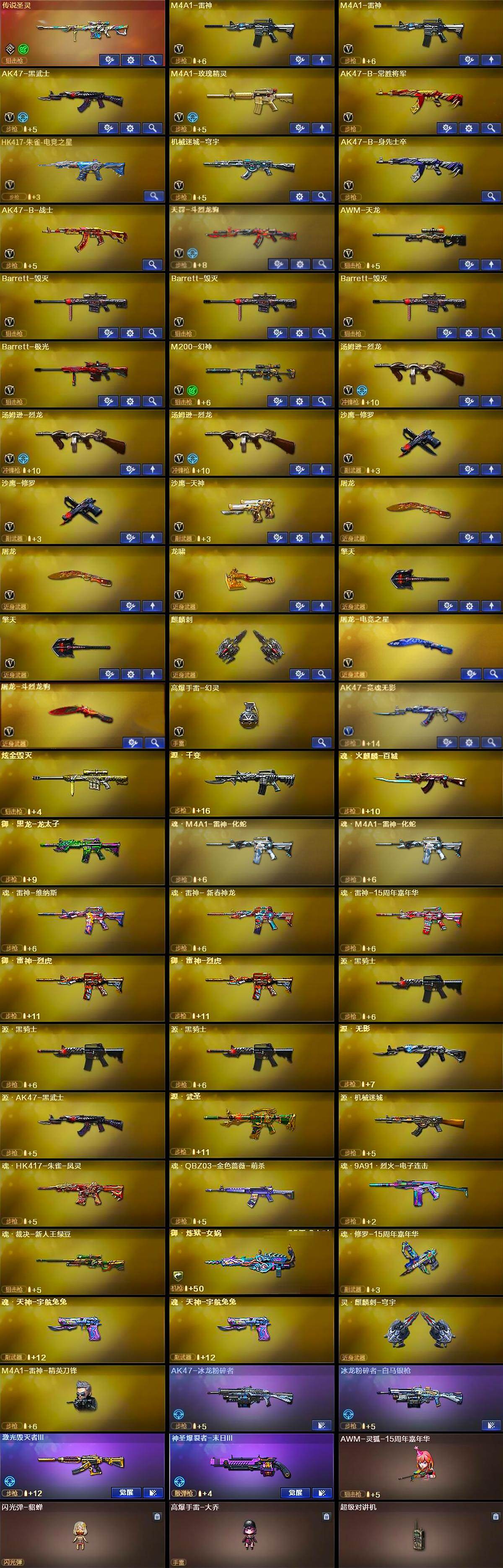 【热门武器】:传说圣灵,M200-幻神,汤姆逊-烈龙*3,沙鹰-修罗*2,金刚伞