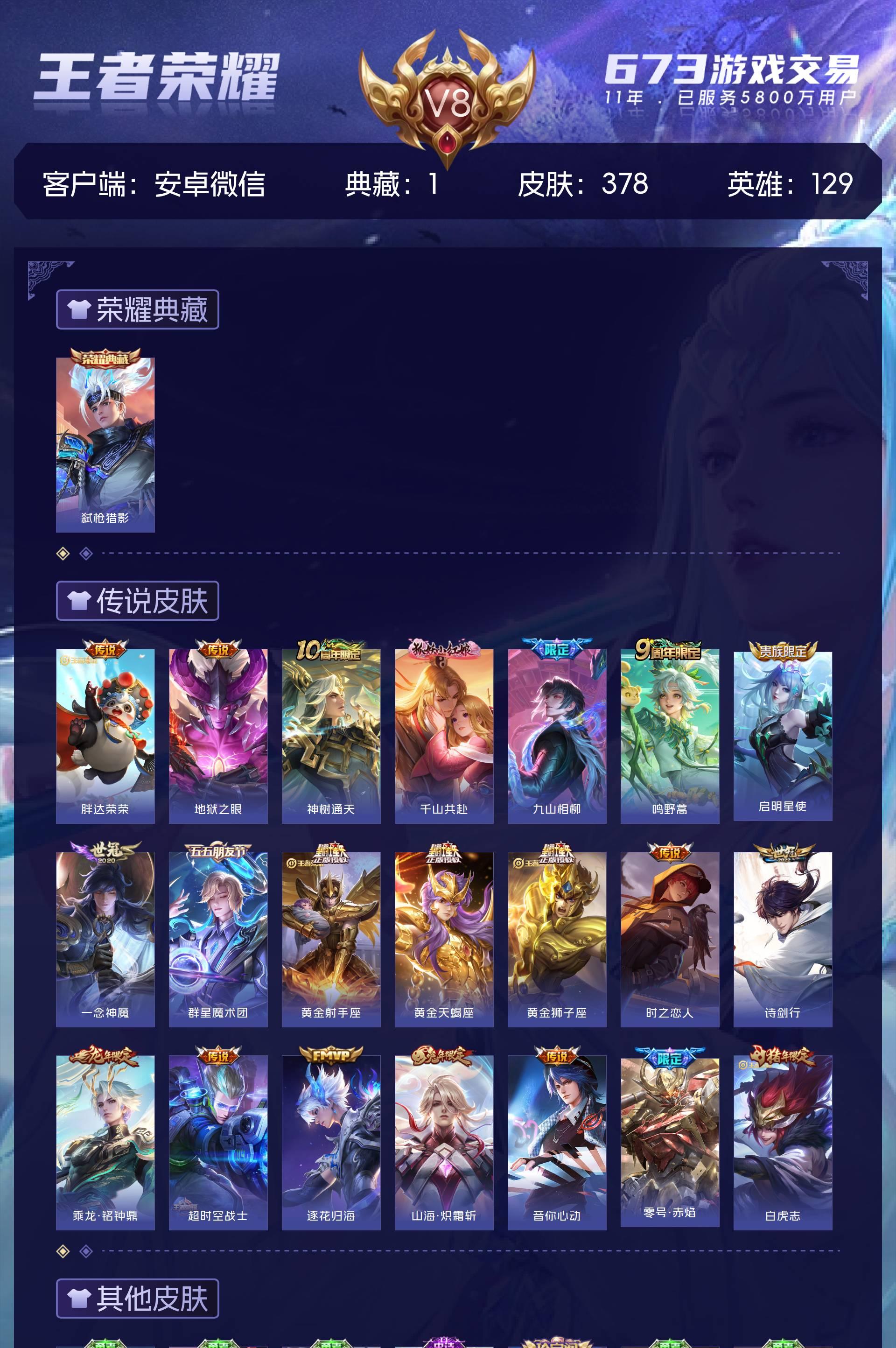 V8 皮肤378 英雄129 永恒钻石 荣耀典藏1 传说21