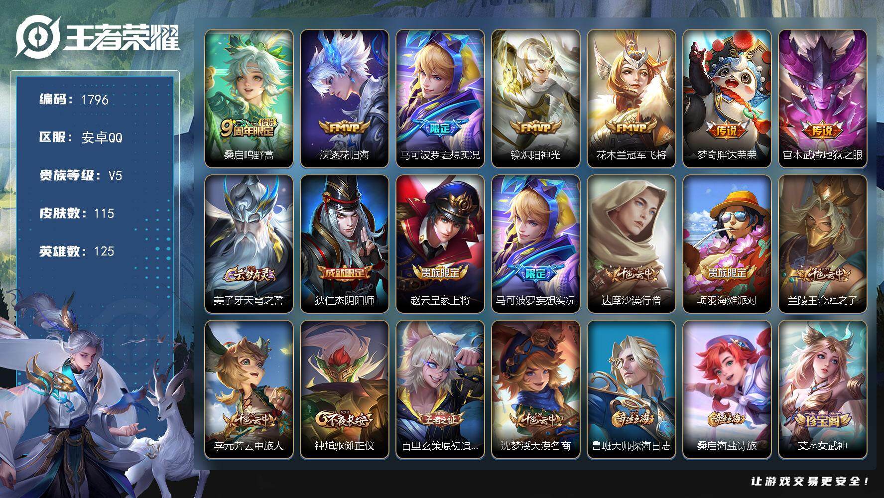 2857004 金标盘古 号上还有104点卷 安卓Q-V5-永恒钻石IV段位-125英雄-115皮肤-7传说-25史诗