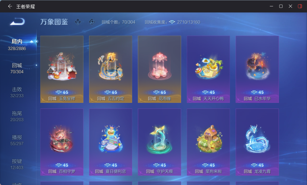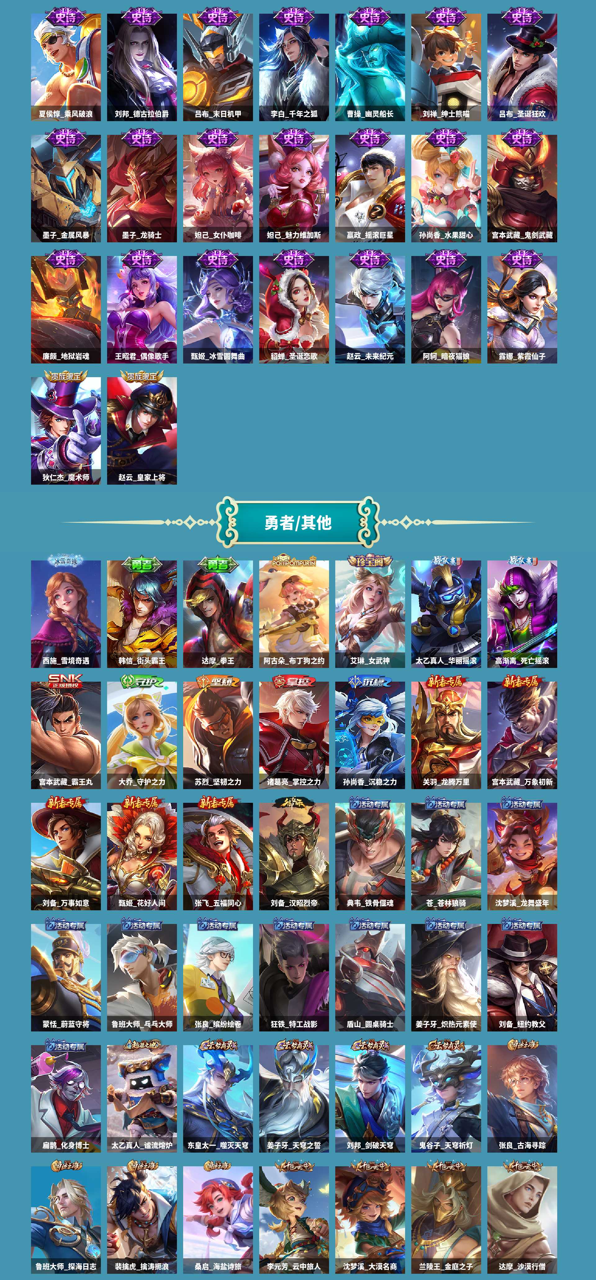 问心!无相!机车关羽+木兰典藏!基德!皮肤数量306印记总数