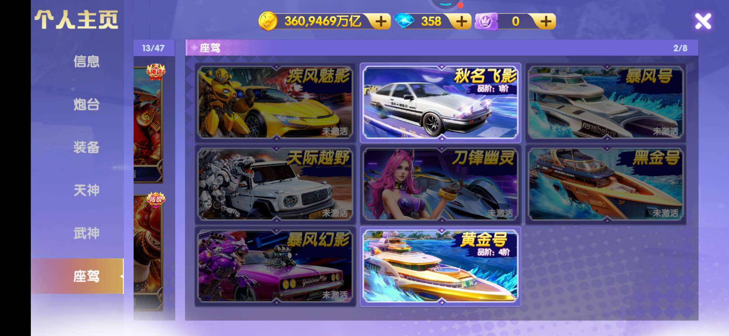 小米360京13武神,洪荒三级,神电,双座驾买断出,一切可换8开头